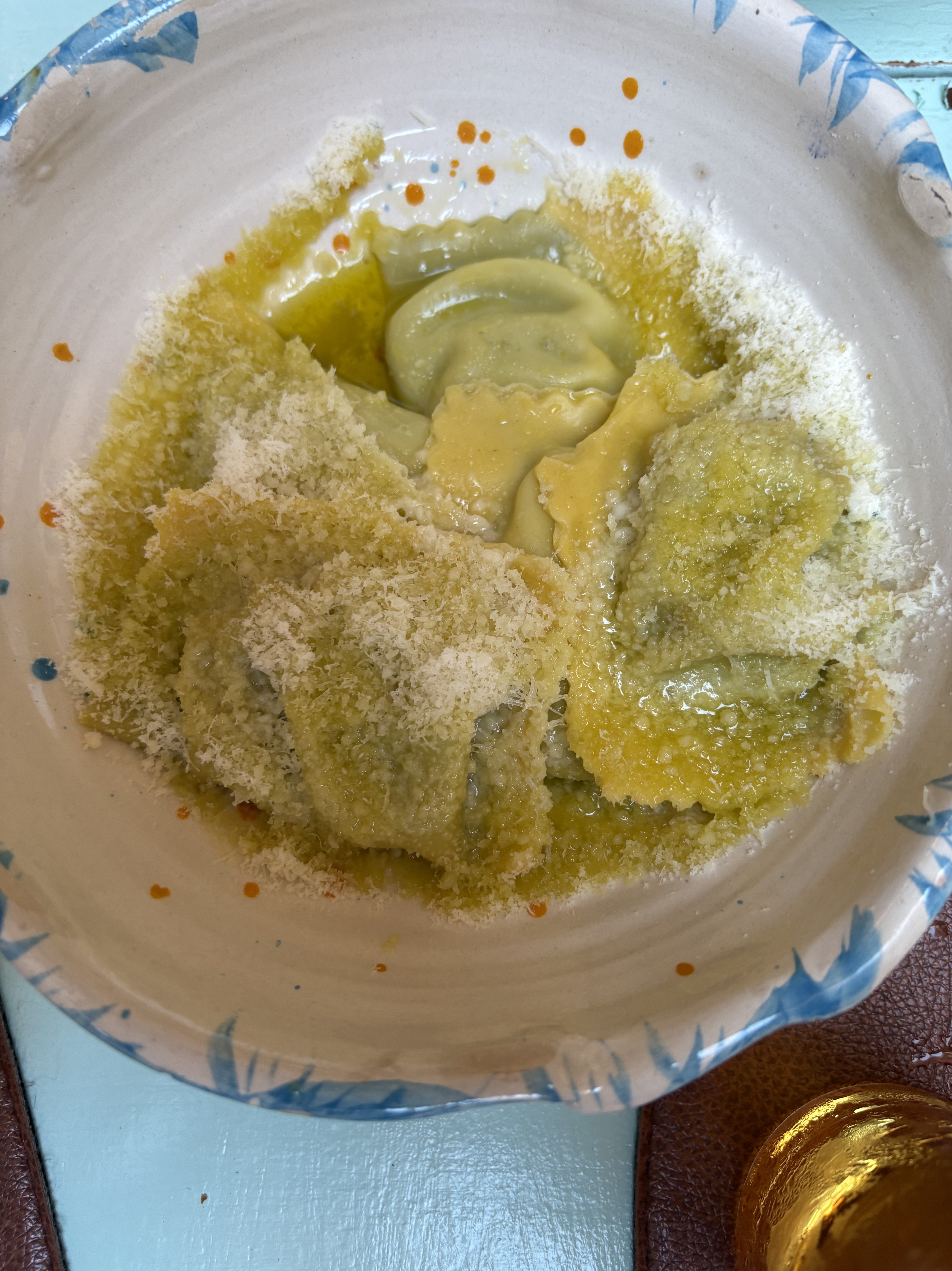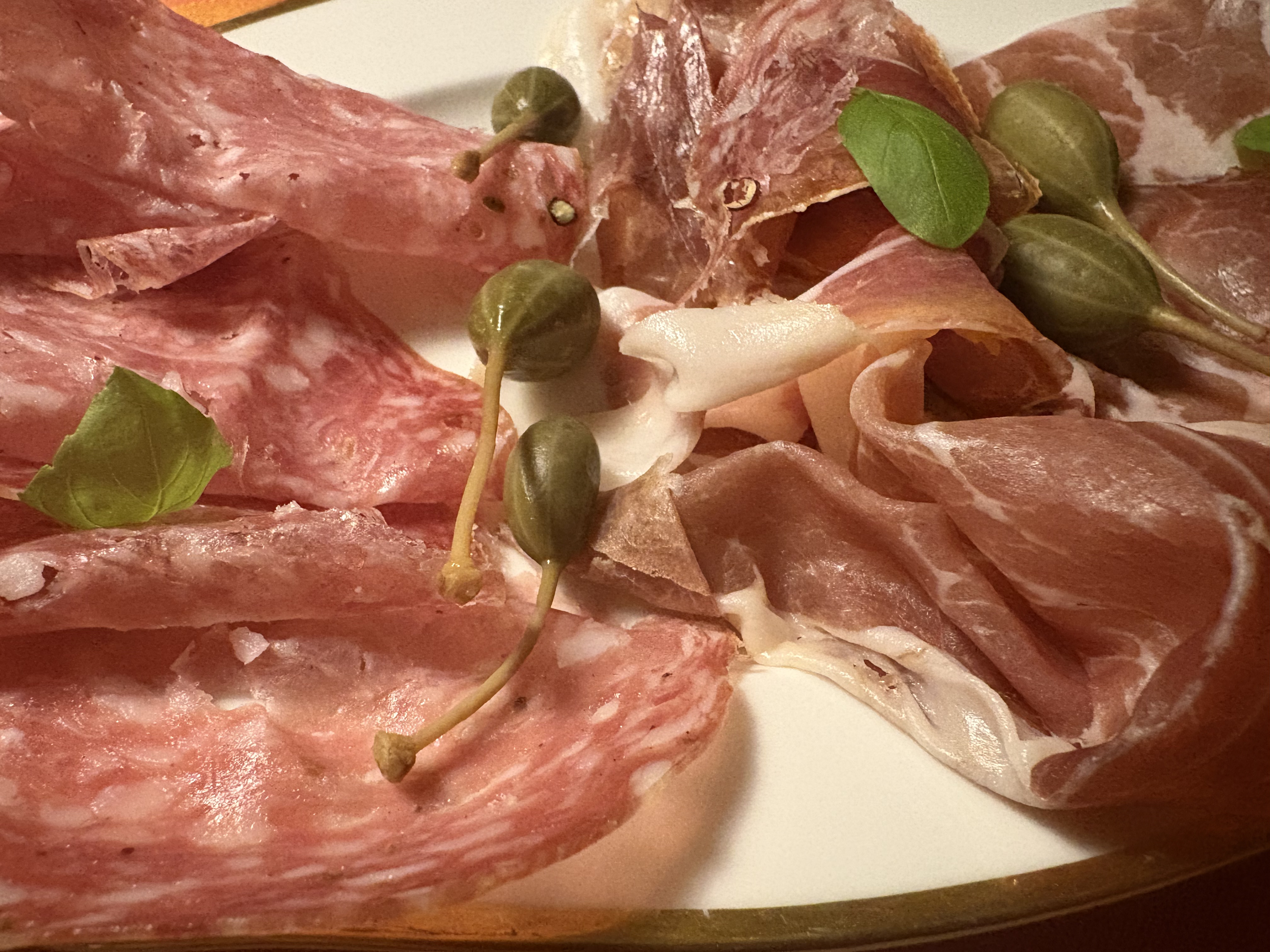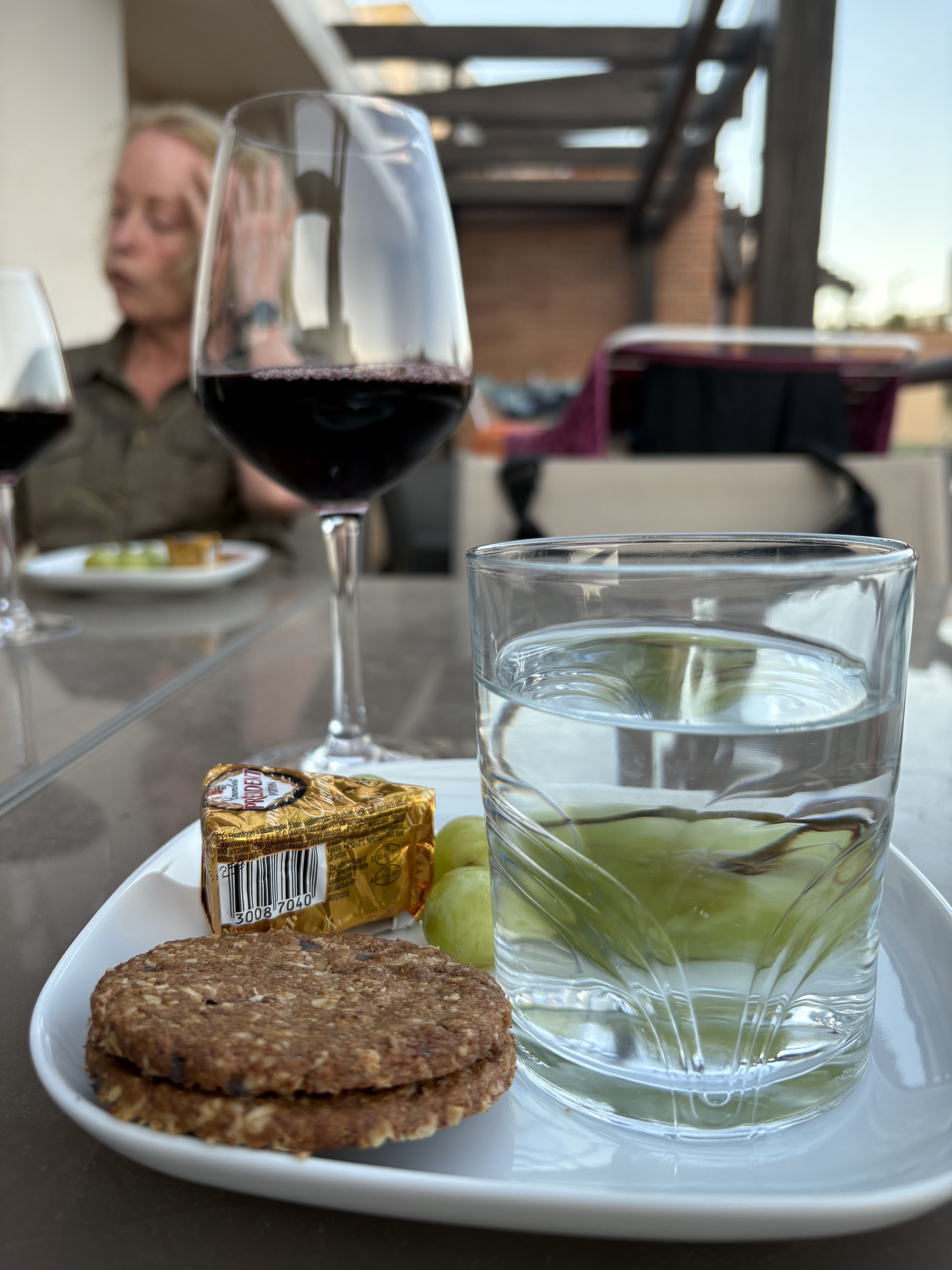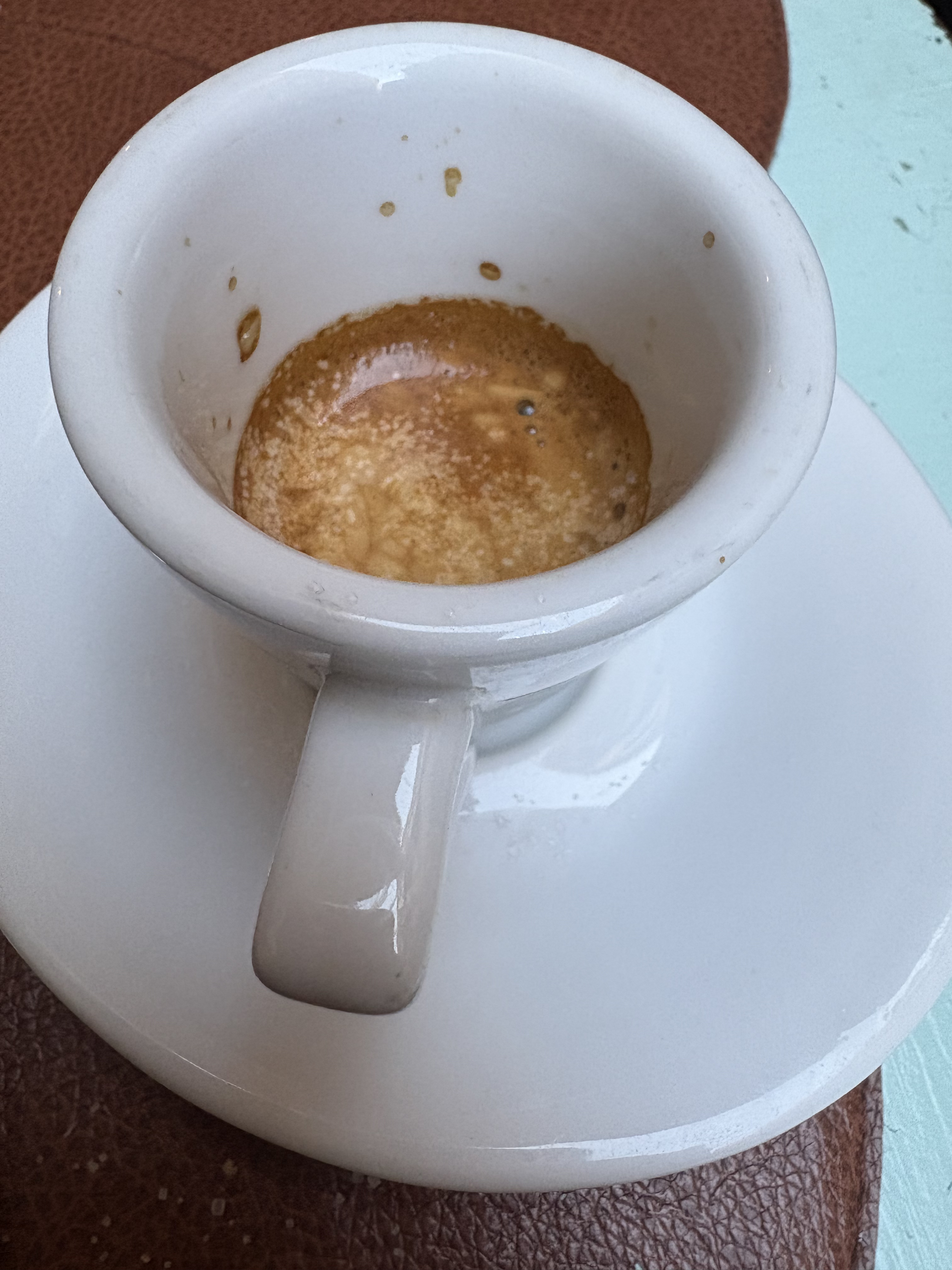 Att låta tiden gå med Z är alltid förtrollande. Vinet – Angelo Montepulciano d’Abruzzo – smakade förträffligt. Oliverna likaså. Folk kom i en strid ström för att ta skydd för regnet, men motades vänligt men bestämt ut av personalen. Vår tid var över. Dags att betala och gå.