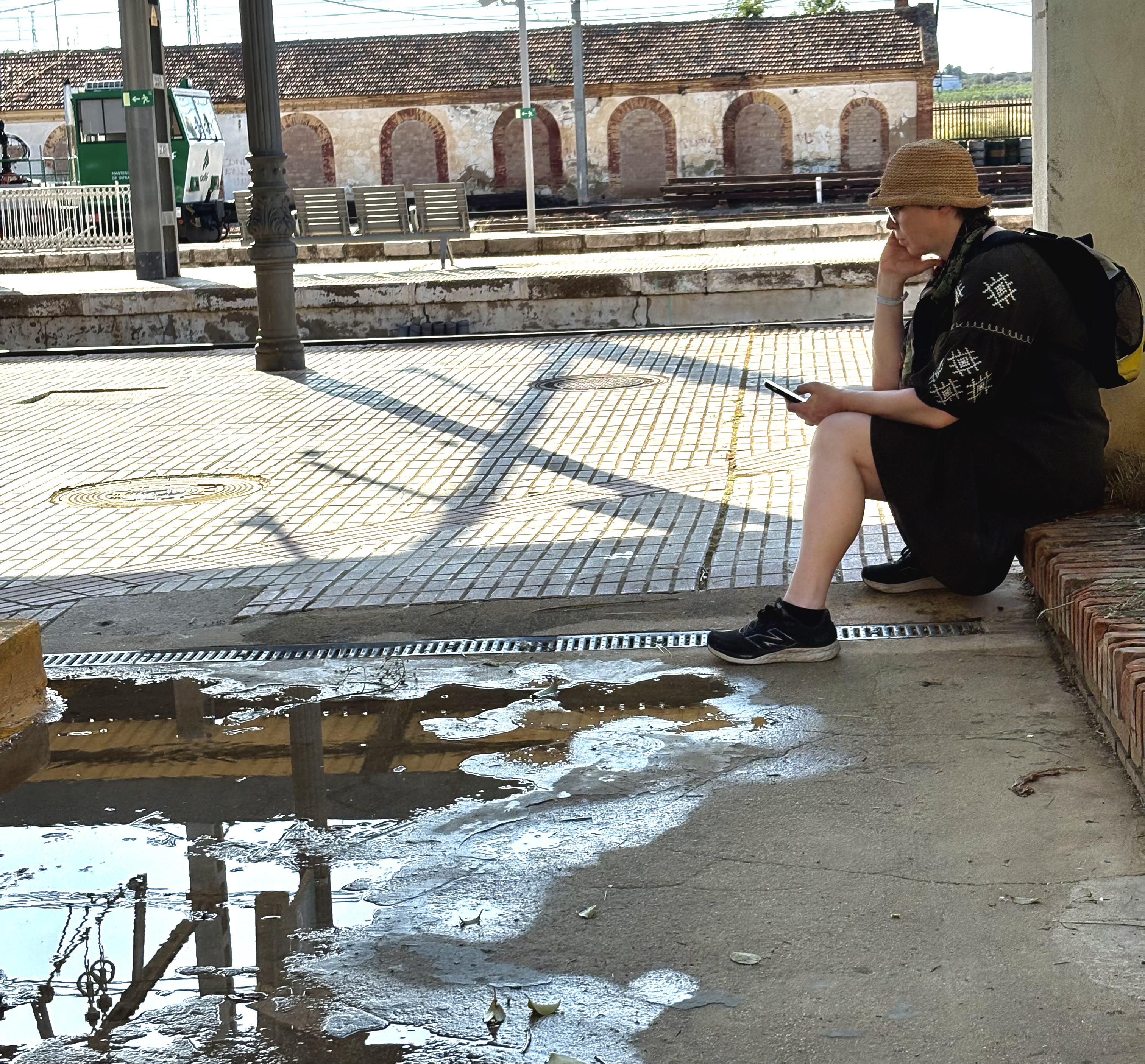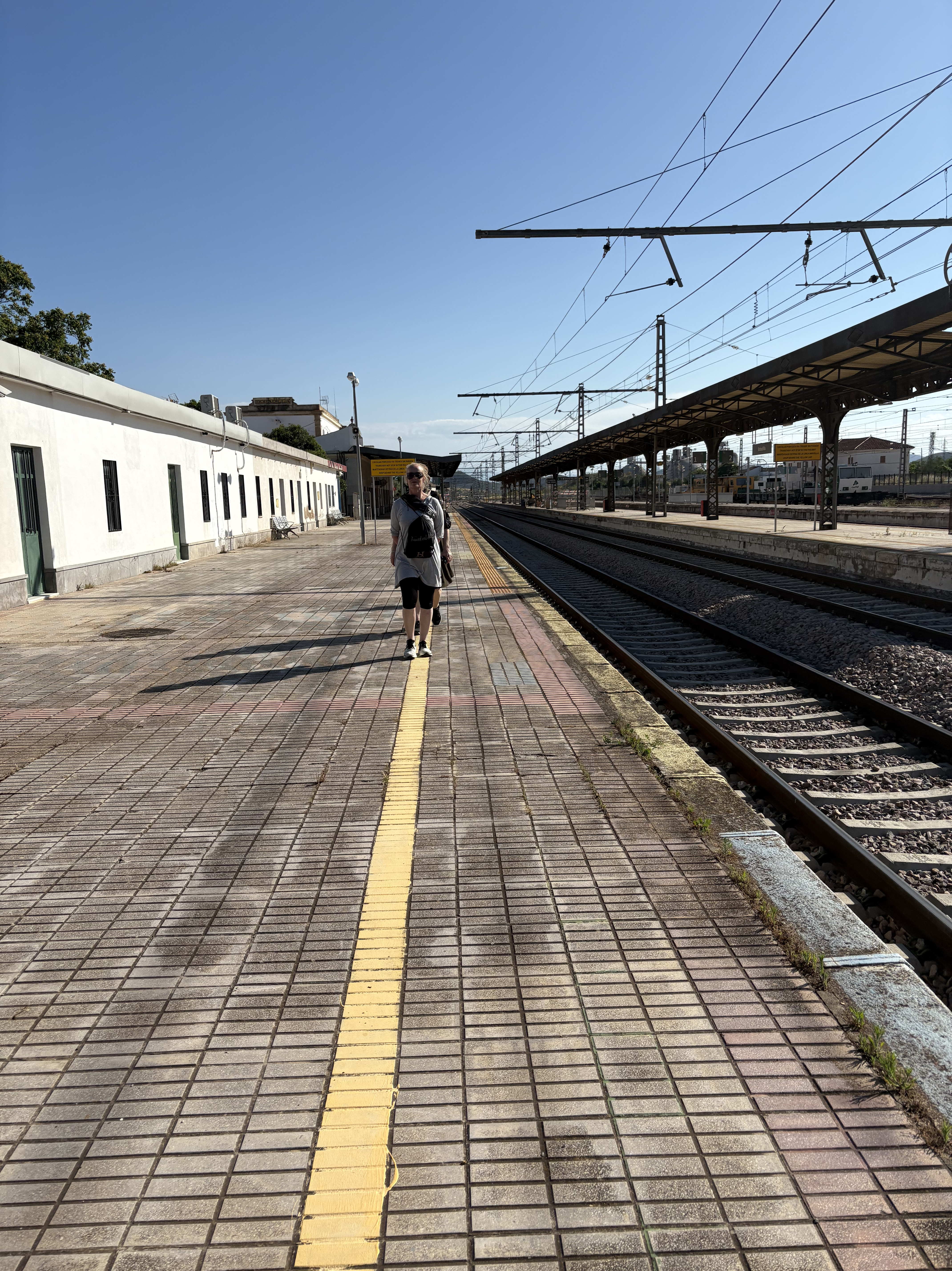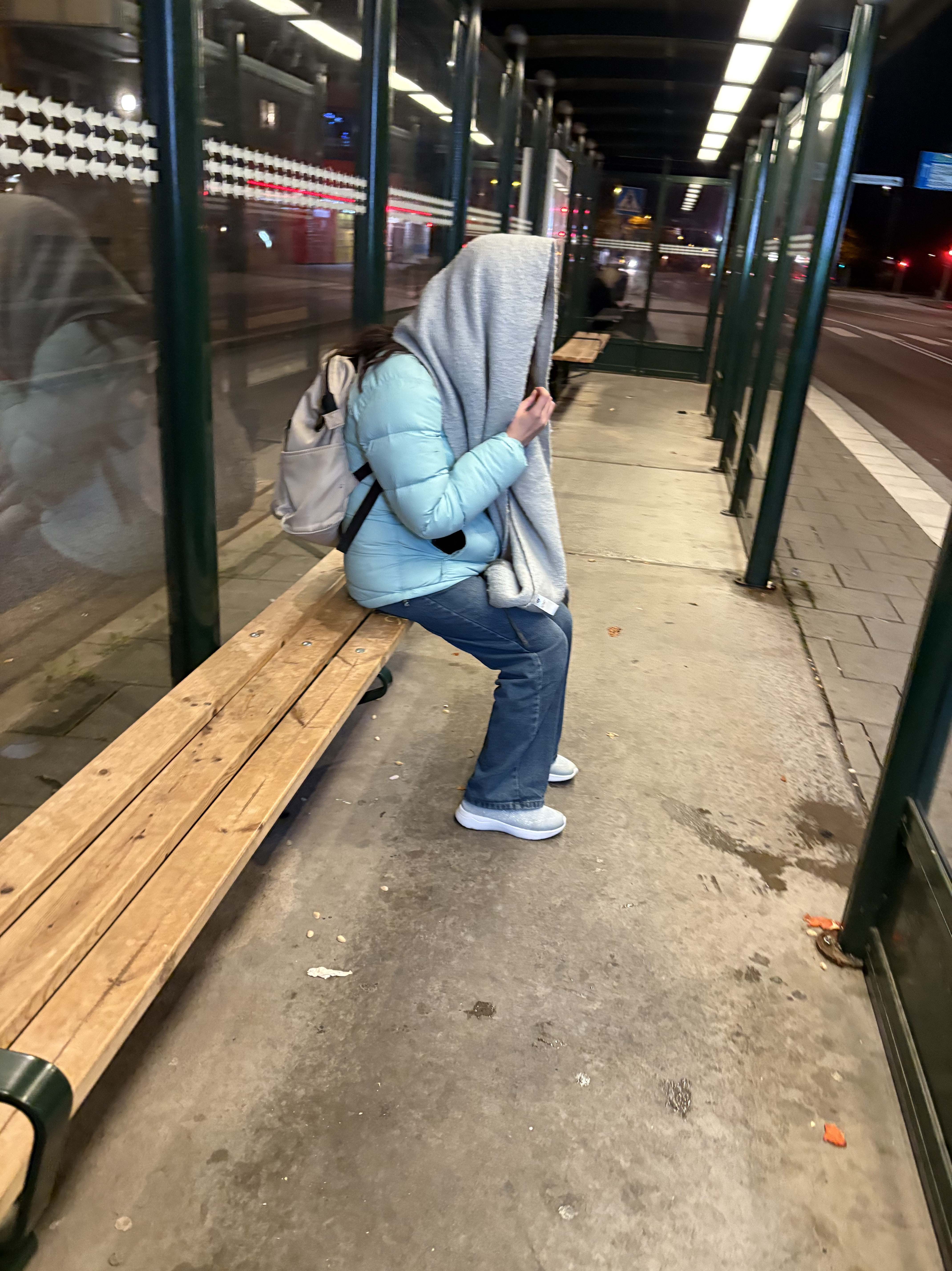 Vid nästa terminal är det ett myller av folk. Vi placerar oss girigt så strategiskt som möjligt och när tåget väl kommer efter en dryg väntan kliver Z frankt på och tar plats för oss båda. Hon är medveten om att stå inte är ett bra alternativ för mitt knä.