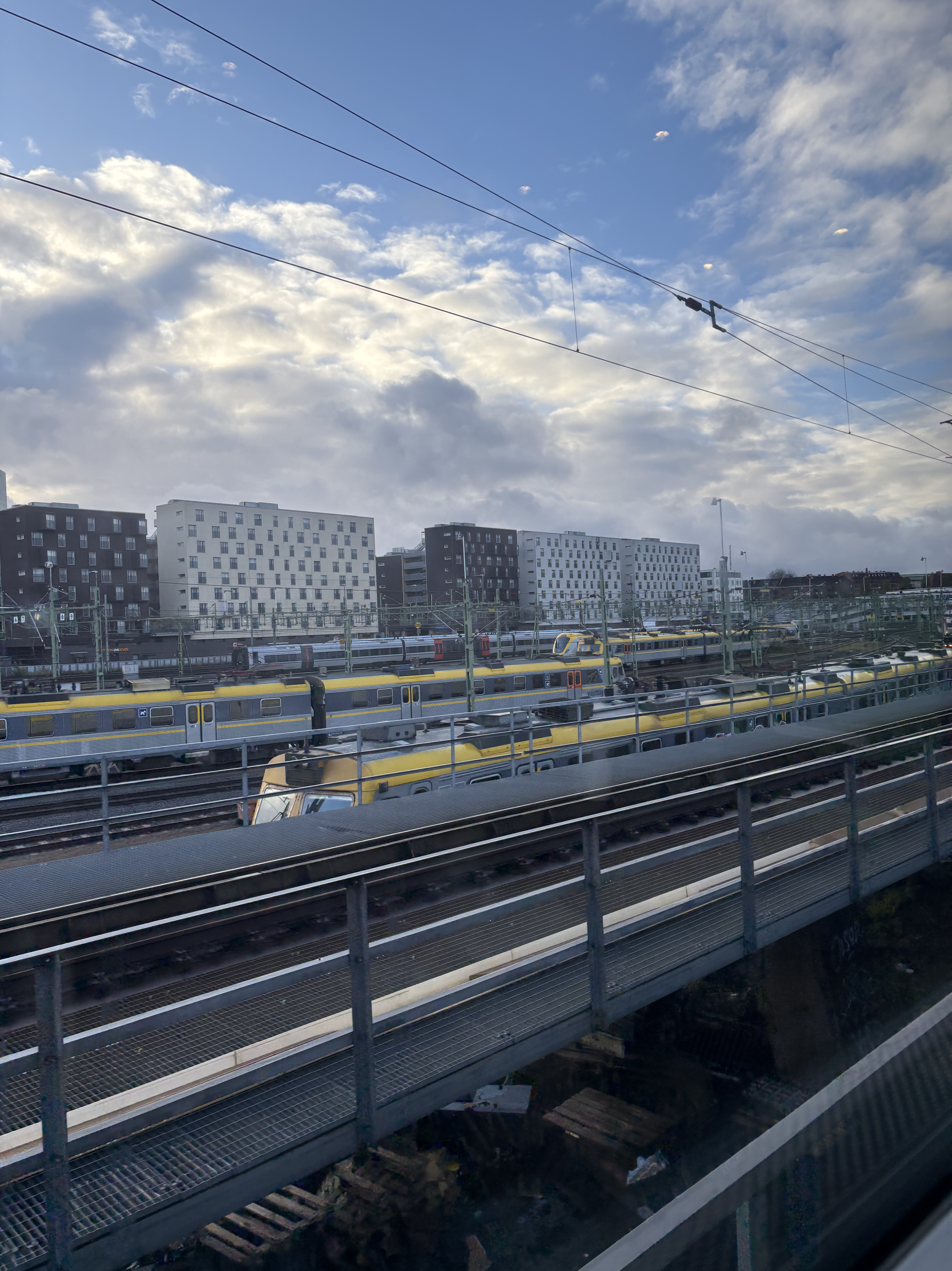 Det är alltid speciellt att åka över bron, oavsett om det är med bil eller tåg. Det känns futuristiskt, på något vis. Så snabbt skifta från ett land till ett annat, från ett kynne till det danska, från svenska till danska på bara någon halvtimme. Jag gillar fönsterplatsen. Ser scener passerar revy, noterar utan att lägga något på minnet. Allt får bara fara förbi med en tom blick.