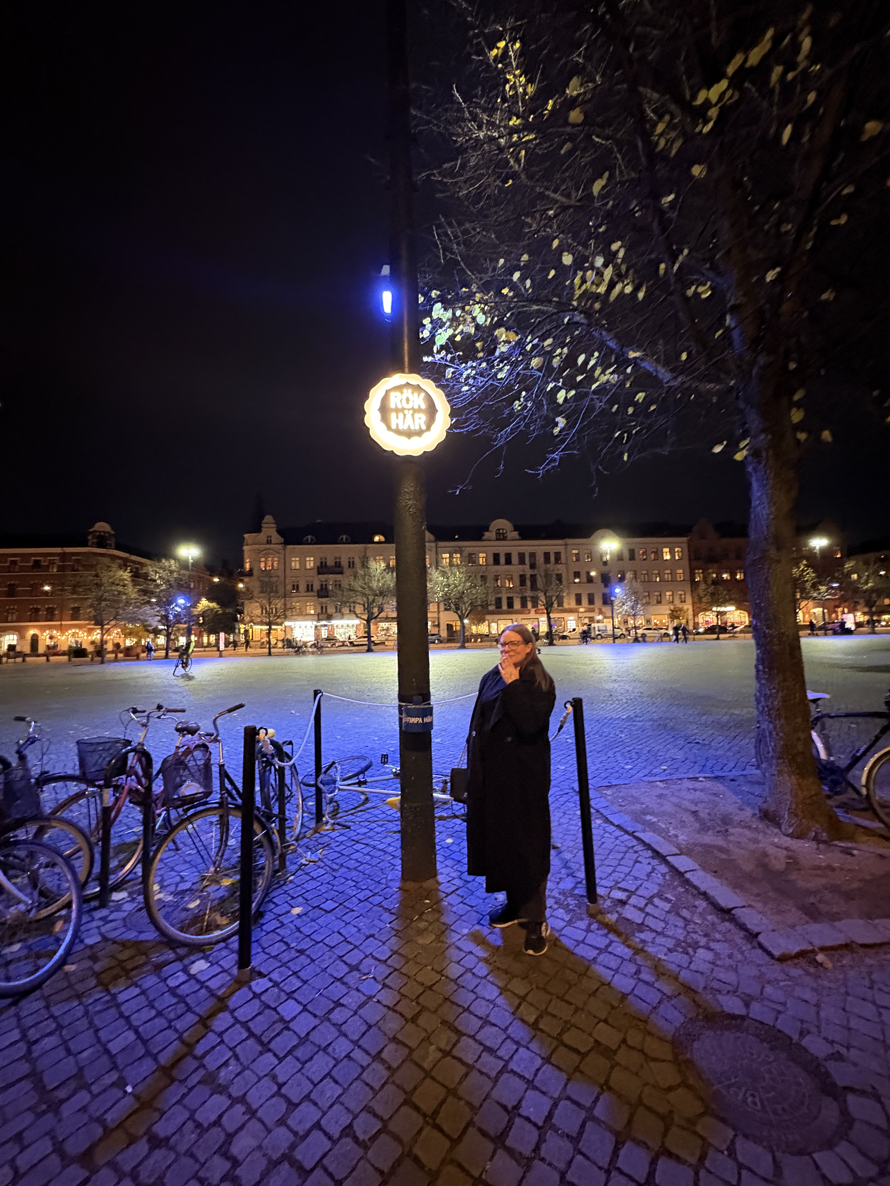 Vi tar oss mot Værnedamsvej. Ser förtjust på denna favoritgatan i Kphm, som det var länge sedan vi besökte. Går in i en ostbutik som dignar av lockande varor. Nästa gång, säger vi till den trevliga expediten. Nästa gång. Vi passerar Les Trots Cochons där vi njutit fler gånger än en. Men senast var också det länge sedan. En butik med julprylar lockar in Z och jag följer med för att snabbt gå ut. Jag är rastlös. Z kommer, men vänder in igen. Hon har sett någon julpryl i skylten och vill köpa den. Hon kommer inte tillbaka. Jag står under en markis och spanar in folklivet, som är intensivt i kvällsmörkret. Z kommer inte. Jag vänder åter och står utanför och tittar in. Det är kö. Z är i och för sig först i den, men expediten håller på och krånglar med en krånglande kvittorulle till betalmaskinen. Jag suckar, återgår till min position under markisen. Så kommer Z och vi kan ta oss ned mot Vestebrogade och Hovebanegaarden, tar fel perrong, undrar vilket tåg som tar oss till Ørestad och hur många zoner vi ska betala. Löser det. Hamnar på rätt tåg, betalar rätt avgift, tar oss tillbaka till hotellet och börjar röra oss mot arenan genom Fields. Vi behöver köpa tandkräm, som vi missat att ta med oss. Inne i den gigantiska butiken Bilka (en kedja jag helt har missat under mina år med Z – 2007 till nu) tar vi en vända och inser, bland alla matvaror, att vi är helt i fel fas gällande kost. Vi kommer inte hinna äta innan konserten, om vi inte köper något här. Det blir håndmadder, små smørrebrød, som vi tar med oss i hopp om att Z ska kunna smuggla in dem i arenan. Jag har mina dubier; inte hon. Hon har, som vanligt, rätt. Vakten känner förvisso på henne väska, men den väger lätt, inga drycker i flaskor där. Maten är räddad och øl köper vi i baren.