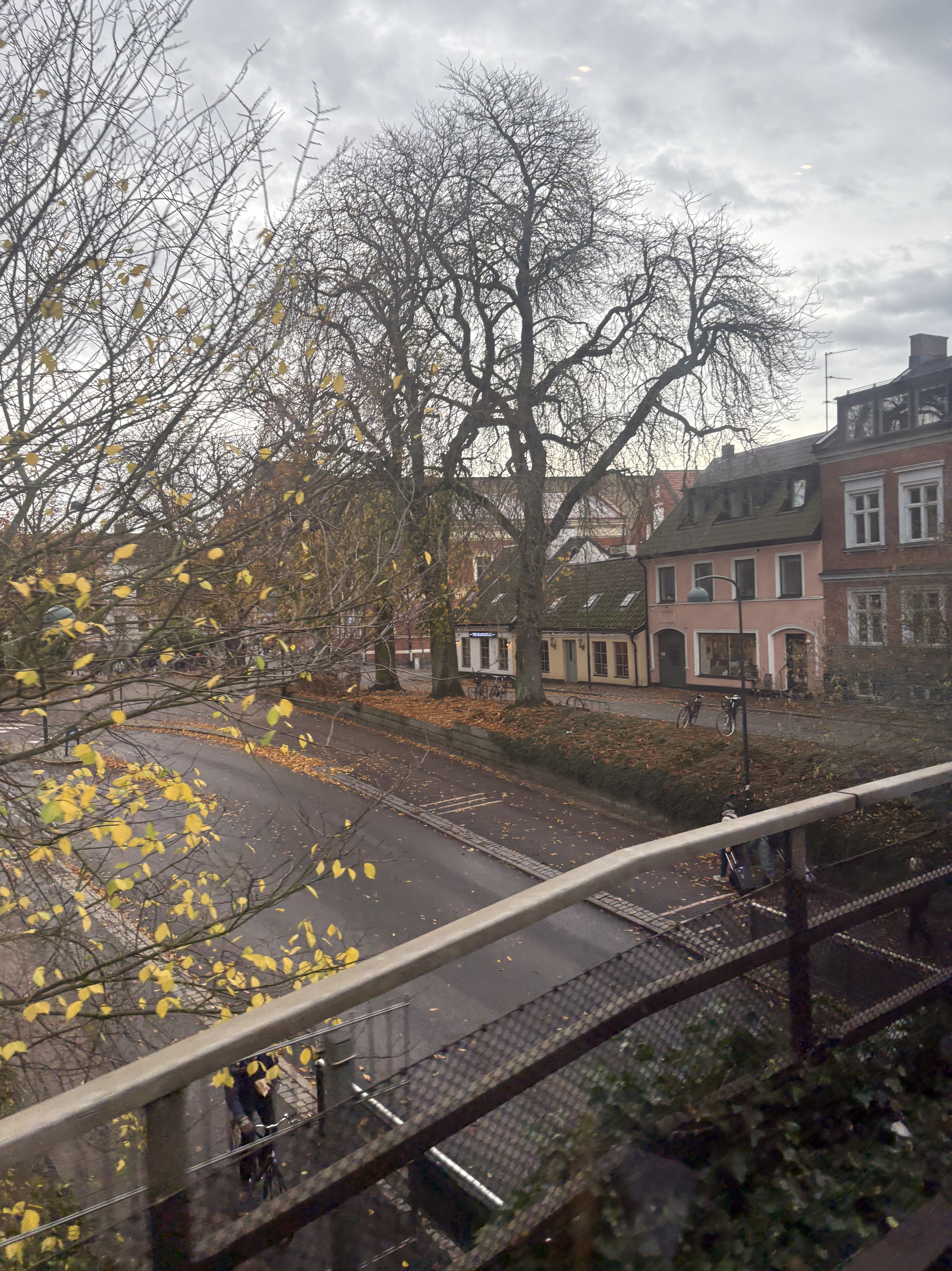 Z är bästa ressällskapet. Vi matchar varandra bra, dra oftast åt samma håll. Vi kliver av vid Kastrup för tåget vi kom med ska vidare utan stopp till centrala Köpenhamn på grund av förseningar. Det var inget som nämnde i Malmö. Så vi står huttrande och väntar in nästa, men det dröjer inte länge innan det kommer. Några stopp senare är det dags. Amager bjuder på kall, klar novemberluft under en blekblå himmel. Vi knatar med våra resväskor mot hotellet, som ligger bortom Fields. Cabinn Metro hotell är ett prisvärt alternativ, som även inkluderar frukost. Man tänker att en adress som Arne Jacobsen Allé – uppkallad efter den kände och framgångsrike arkitekten och formgivaren – skulle vara en stilfull boulevard. Men det är en bred, trist gata med trista, fyrkantiga hus långt från Arne Jacobsens modernistiska tänkt. Endast de färgglada lönnlöven piggar upp. Men vi checkar in, får får kabin som liknar något som en lyxkryssare kunnat erbjuda och väljer att skyndsamt ta oss mot Byen i våra hjärtan.