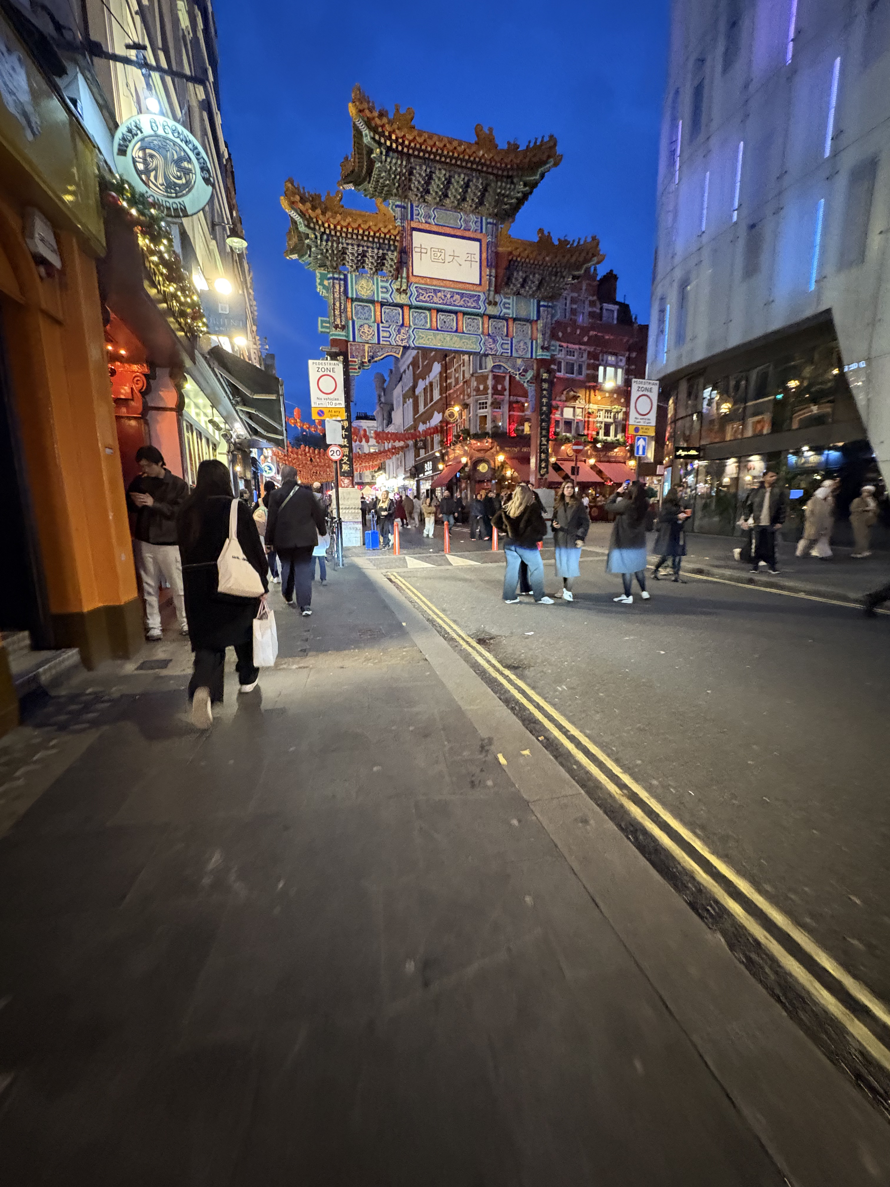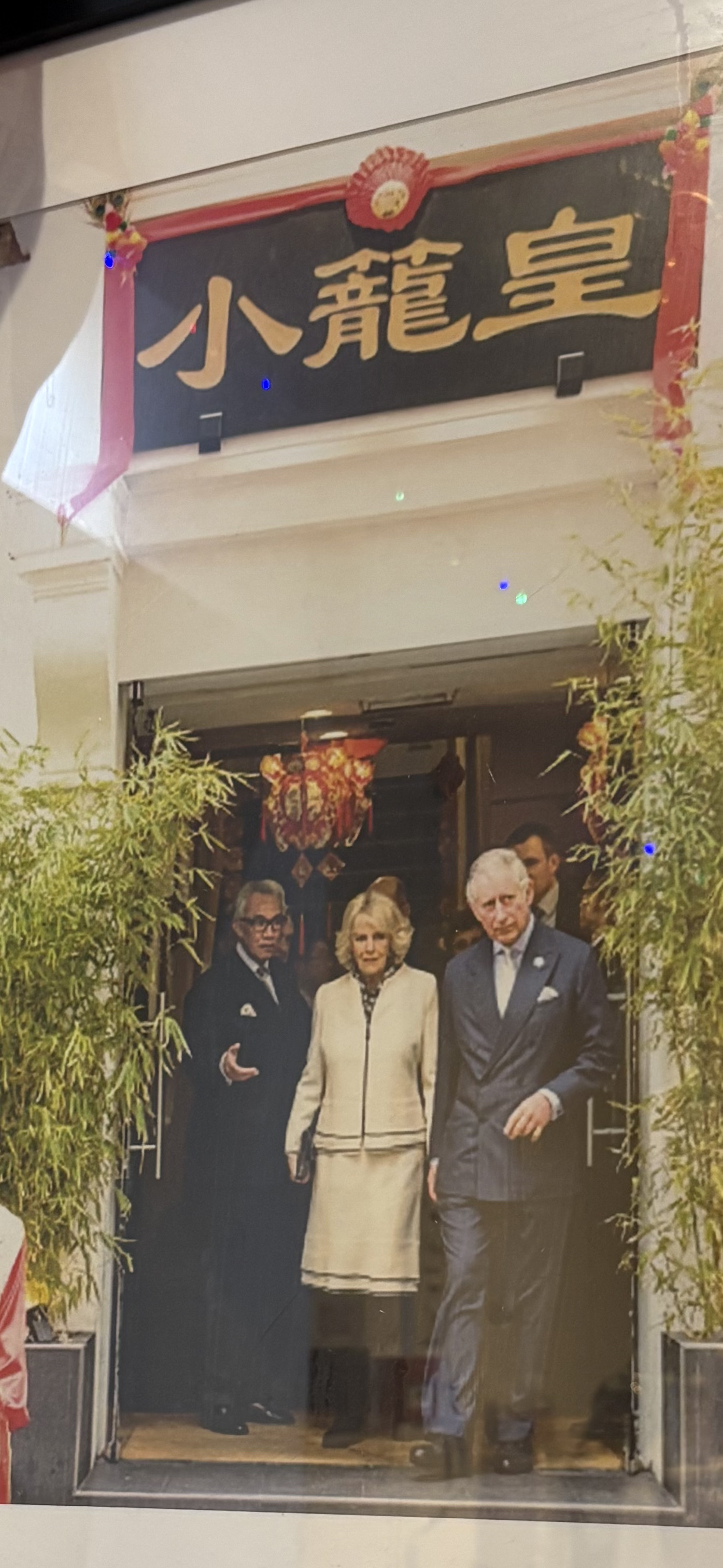 Jag smiter uppför trapporna till toaletten – gud, för att vara handikappad eller rullstolsburen i dessa etablissemang – efter att vi har betalt. Z följer efter. Hon dröjer. Jag går ner. Kollar foton i entrén och ser att kungaparet – eller om det var innan drottningen checkat ut – varit där och att Camilla fått jobba ihop sina egna dumplings. Det satte förstås extra glans åt besöket. Jag går ut. Det regnar försiktigt och mörkret har omfamnat kvällen. Folkströmmen är intensiv, men det ska bli värre. Till slut kommer min hustru. Vi går ned mot Leicester Square där det är en galet lång kö in till julmarknaden och mängder med vakter. Passagen förbi bli som ett nålsöga. Så trångt att jag får andas in och andas ut. En oerhört stilig punkare i min ålder går före mig, blå skinnjacka, snygga byxor, sandaler på fötterna, spretigt, grått hår, pearcingar. Men han försvinner i trängseln. Det är som en omöjlig passage. Vi som går åt ett håll möts av horder av människor på väg åt det motsatta. Men på något vis tråcklar vi oss förbi, hittar ett hål i väggen och förhör oss om musikaler som vi kanske ska gå och se. Men det blir ingen business.