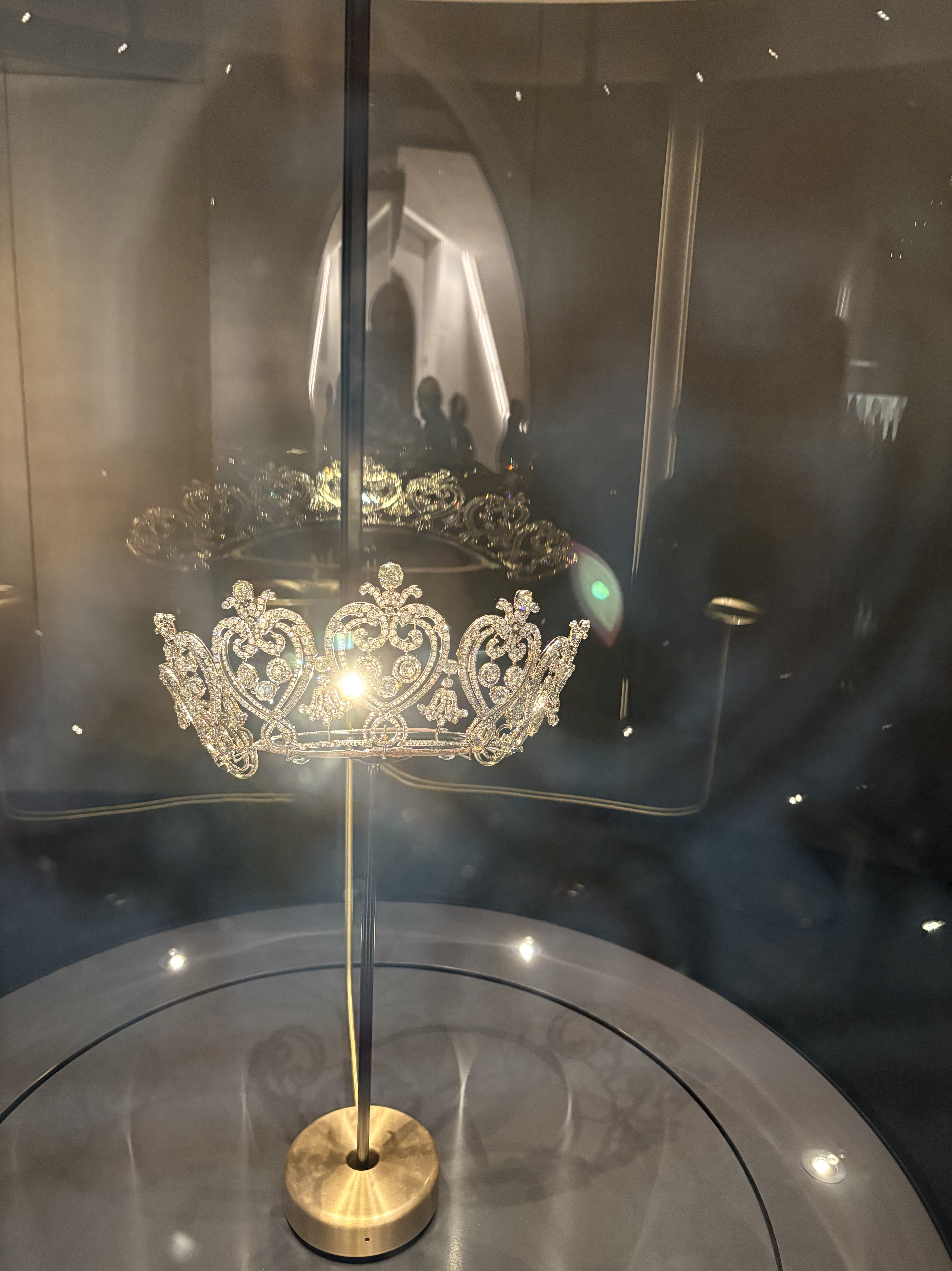 Kön tickar på långsamt, men med ett hyfsat gott humör hos deltagarna. När vi så kommer ner i de nedre environgerna är det i mörker med de dyrbara juvelerna i upplysta skåp för att bjuda bästa exponering. Det är ett fascinerande hantverk och priserna de kan anas ha kostat för att bjudas kungligheter, prominenta, filmstjärnor kan man inte ens ana.