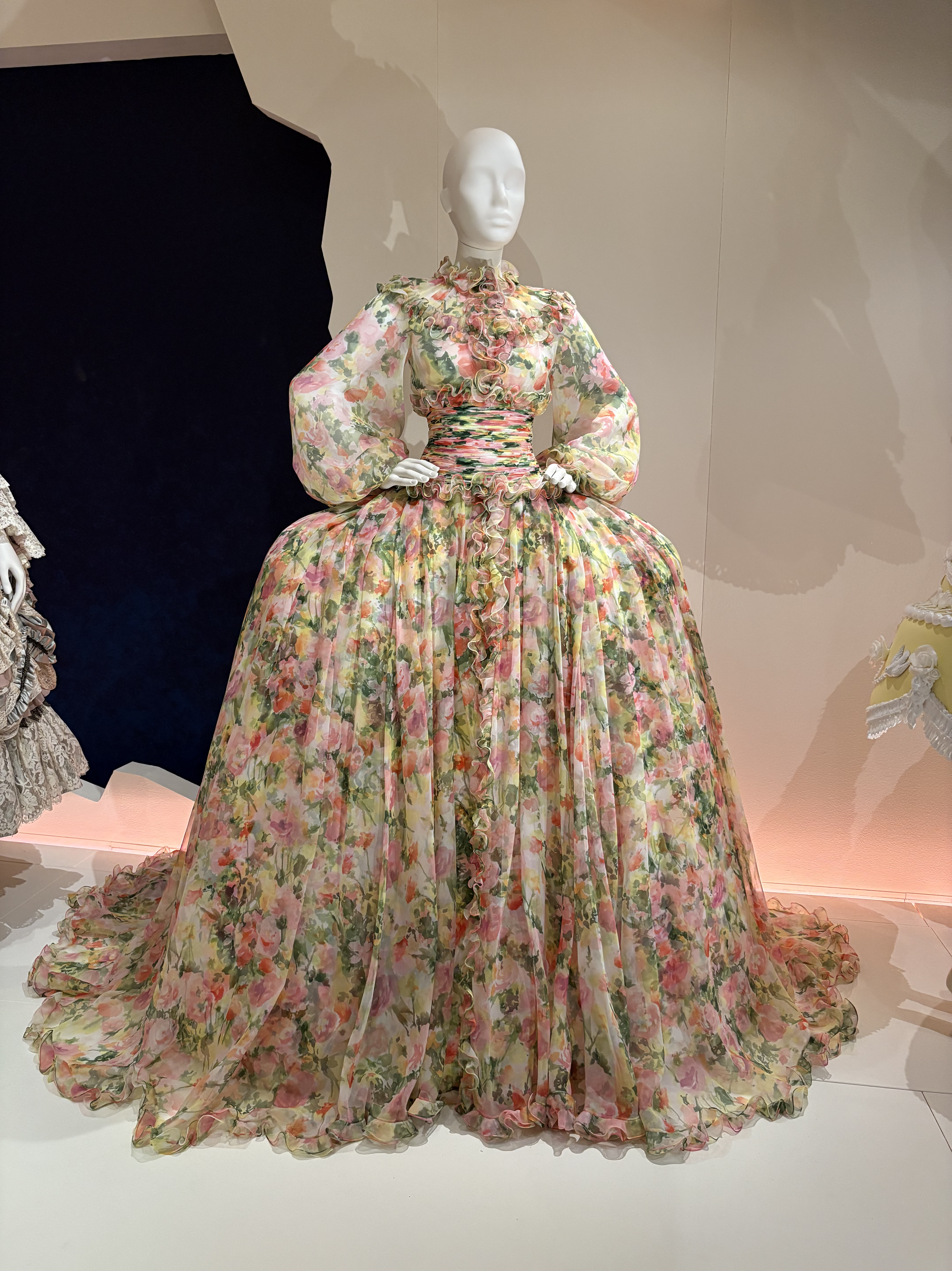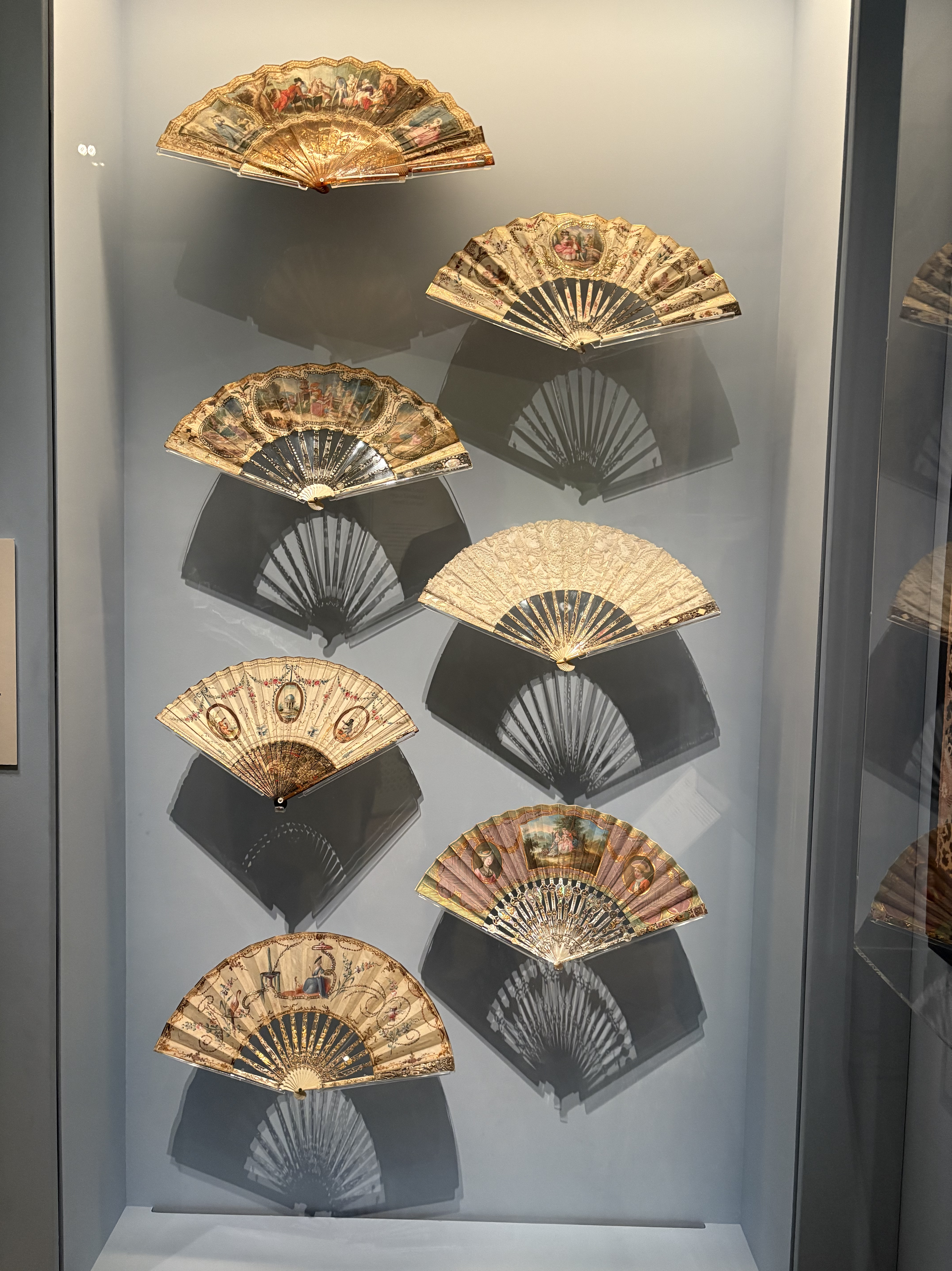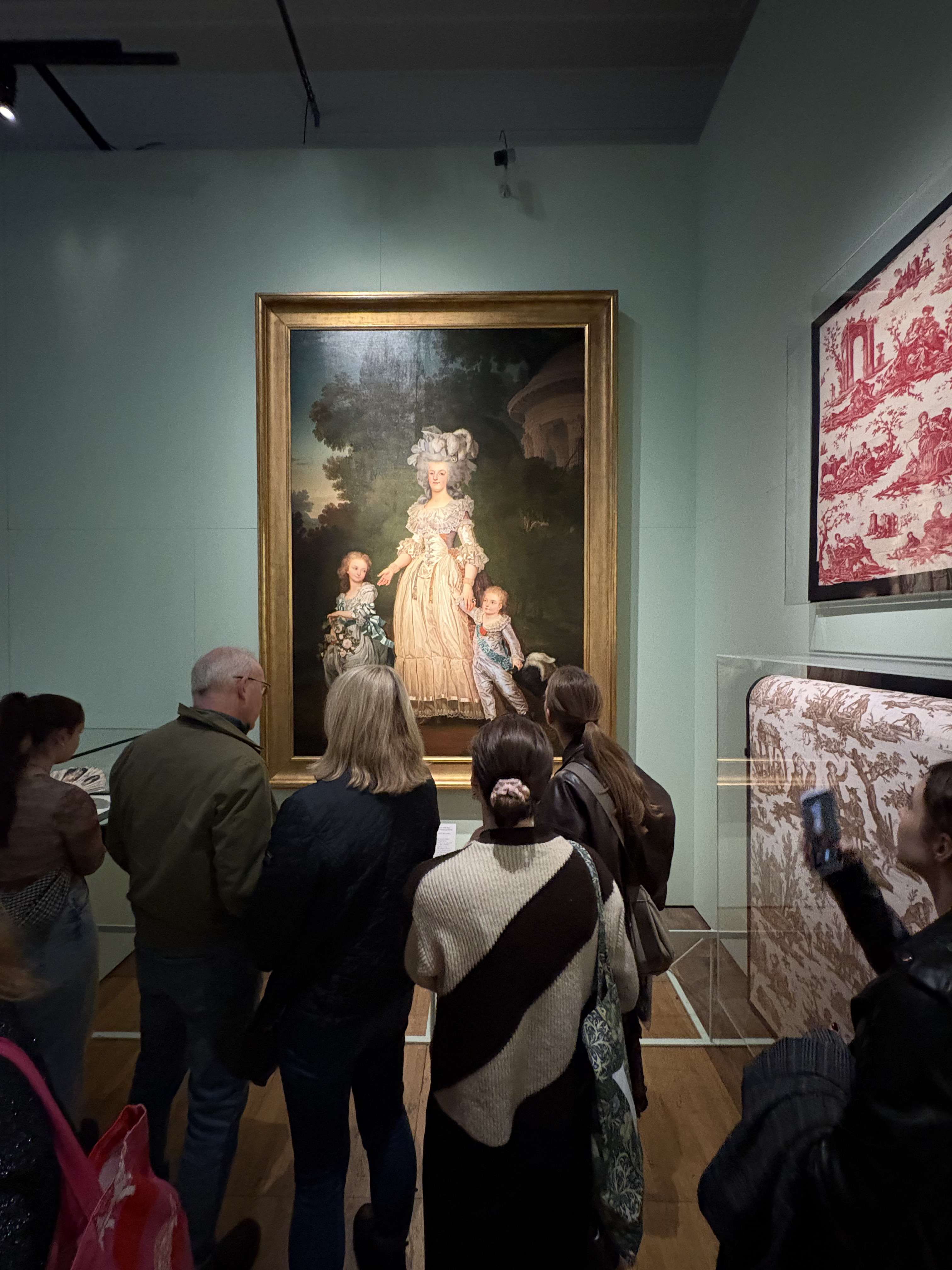 Vi tar oss tid, vrider och vänder på perspektiven. Men slutligen är vi klara. Går upp i ljuset, in i butiken utan att handla någonting och går sedan en genväg till utställningen om Marie-Antoinettes kreationer.