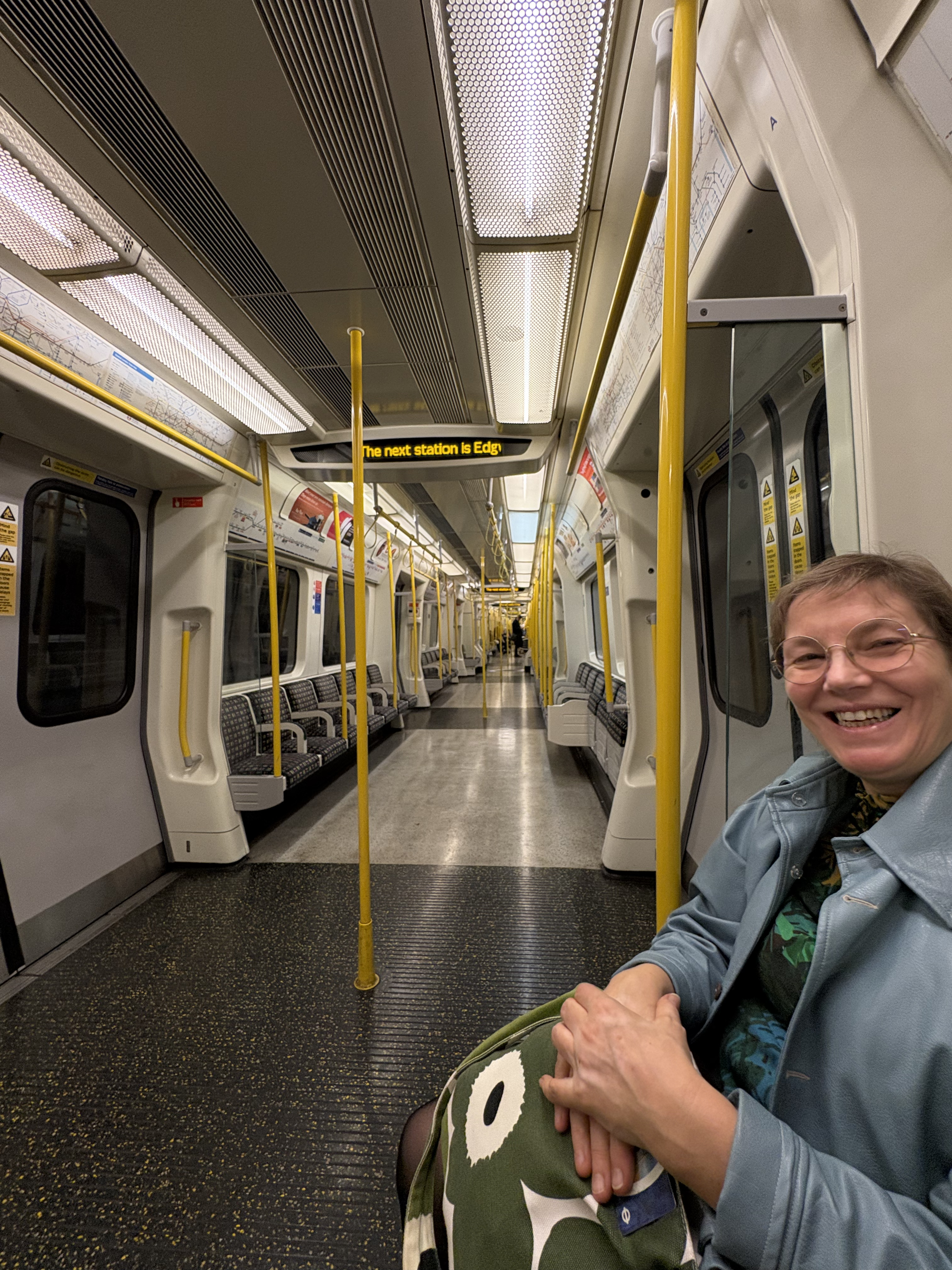 Vi landar på Heathrow före utsatt tid. Pinnar oss ur planet och mot bagageutlämningen. Men först scanna pass som säkerställer inte bara vår identitet utan också att vi har betalat vårt ETA. Förbi där tar både Z och jag oss ett toabesök innan bagagebanden börjar rulla. Med resväskorna i handen söker vi oss mot automaterna för att kolla hur våra konton på de tre (!) Oystercarden har det. Rätt bra, visar det sig. Men de gäller inte för Heathrow express eller Elizabeth Line, som ska ta oss till Paddington. Vi dividerar fram och tillbaka, väljer det billigare och senare alternativet. (Ja, jag vet att man kan ta Underground till city, men vi valde bort det.) Köper biljetter och går och går ned till perrongerna. Ställer oss och väntar på Elizabeth Line-tåget, som aviserar snar ankomst till där vi står. Så sprakar det till i högtalarna. Något om tåget vi ska med. Inställt. Oklart hur vi ska ta oss vidare. Vi rusar till nästa perrong, där Heathrow Express står. Går ombord. Men tvekar. Är det verkligen rätt? Går av igen. Hastar fram till en person som slutligen förklarar att det tåget går till nästa terminal varifrån Elizabeth Line kommer ta oss till Paddington på de biljetter vi har köpt. Rusar tillbaka. Går ombord. Dörrarna stängs.