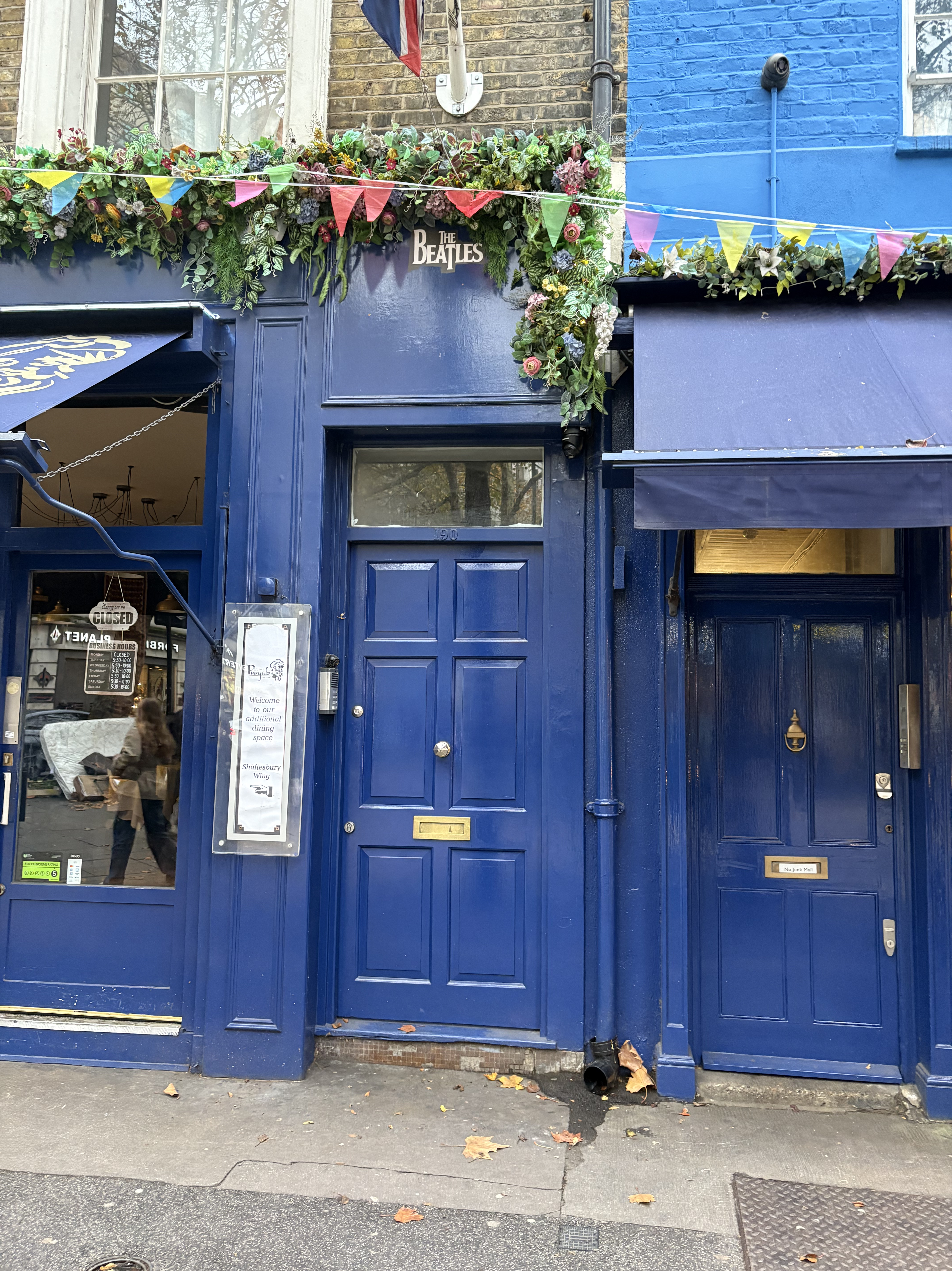 Carnaby Street hägrar. Nytt besök hos Dr Martens, men kortare än normalt. Nedför Broadwick Street, som jag förväxlar med närliggande Berwick Street där ju omslagsbilden till Oasisalbumet ”What’s the story morning glory” togs. Det är inte lätt då stressen i lördagsvimlet slår till. Å andra sidan hade jag precis lyckats lära mig att jag trodde fotot togs på Wardour Street. Lyckligtvis vet jag emellertid var Bar Italia ligger. Favoritstället som vi aldrig vill missa. Nu är jag bekant med geografin och myllret av gator i Soho och går med gott självförtroende mot Firth Street, ser lokuset. Men vi bestämmer oss för att gå mot mina egentliga mål. Skyndar mot Covent Garden, men förvirrar oss upp mot Denmark Street med sina musikhistoriska rötter (Bowie, Elton John, Sex Pistols…). Brusande St Giles High Street och åter nedför Neal Street, där vi någonstans på vägen ställs inför åter ett Beatlesmärkt hus.