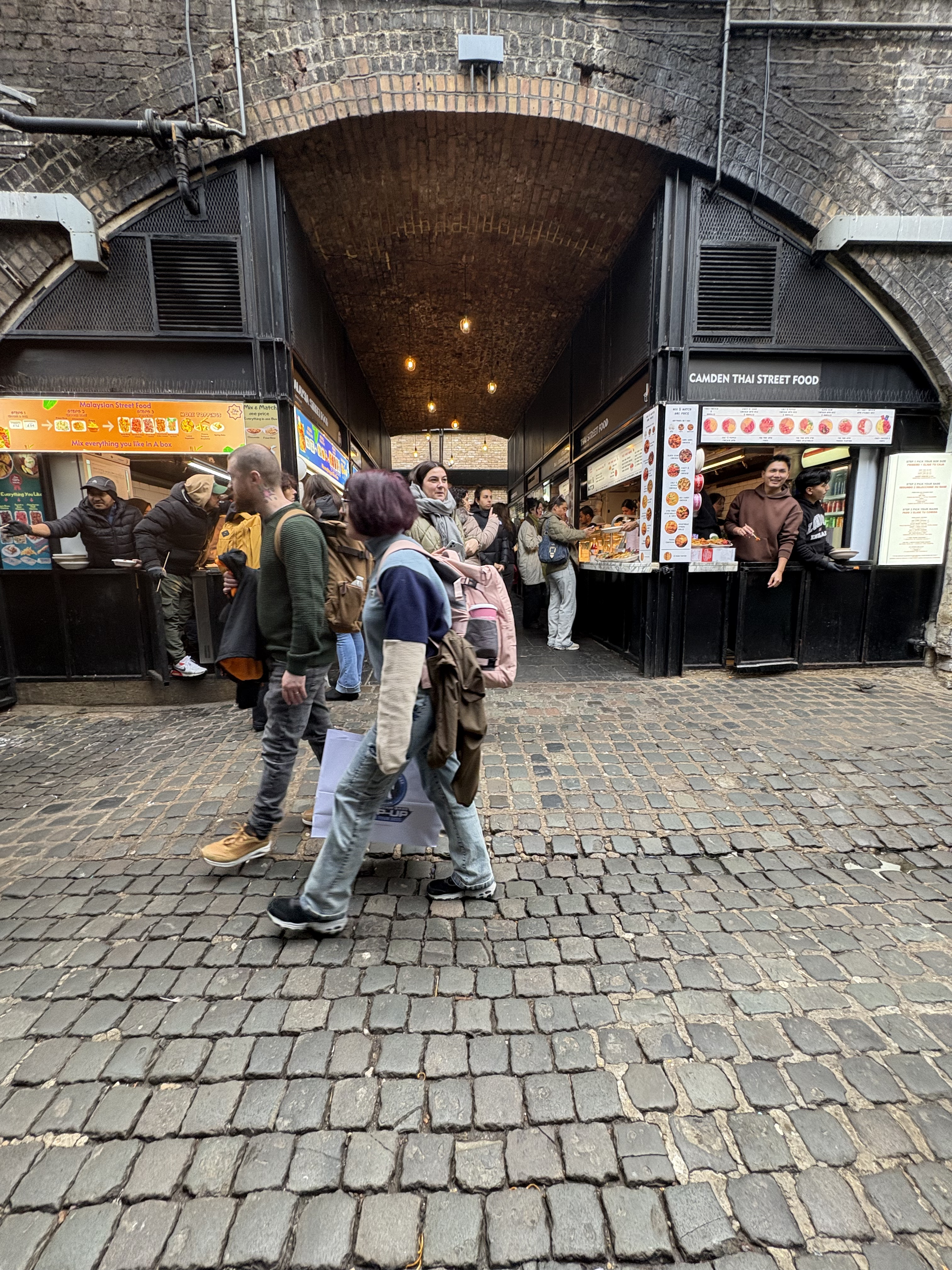 Frukost! Vi har lärt oss rutiner och försöker balansera vår mat på det lilla bordet. Bland porslinet finns nu en tekanna. Efter den brittiska frukosten är det dags att ge sig av för det som dagen bjuder. Z vill till Camden Lock Market. Förutom det ska vi träffa gudsonen på en restaurang som han har valt ut. Vi ska också hinna med att larma av jackan och slutligen åka österut för att se ”Abba Voyage”. Ett späckat schema, som förhoppningsvis också ska bjuda på lite improvisation.
