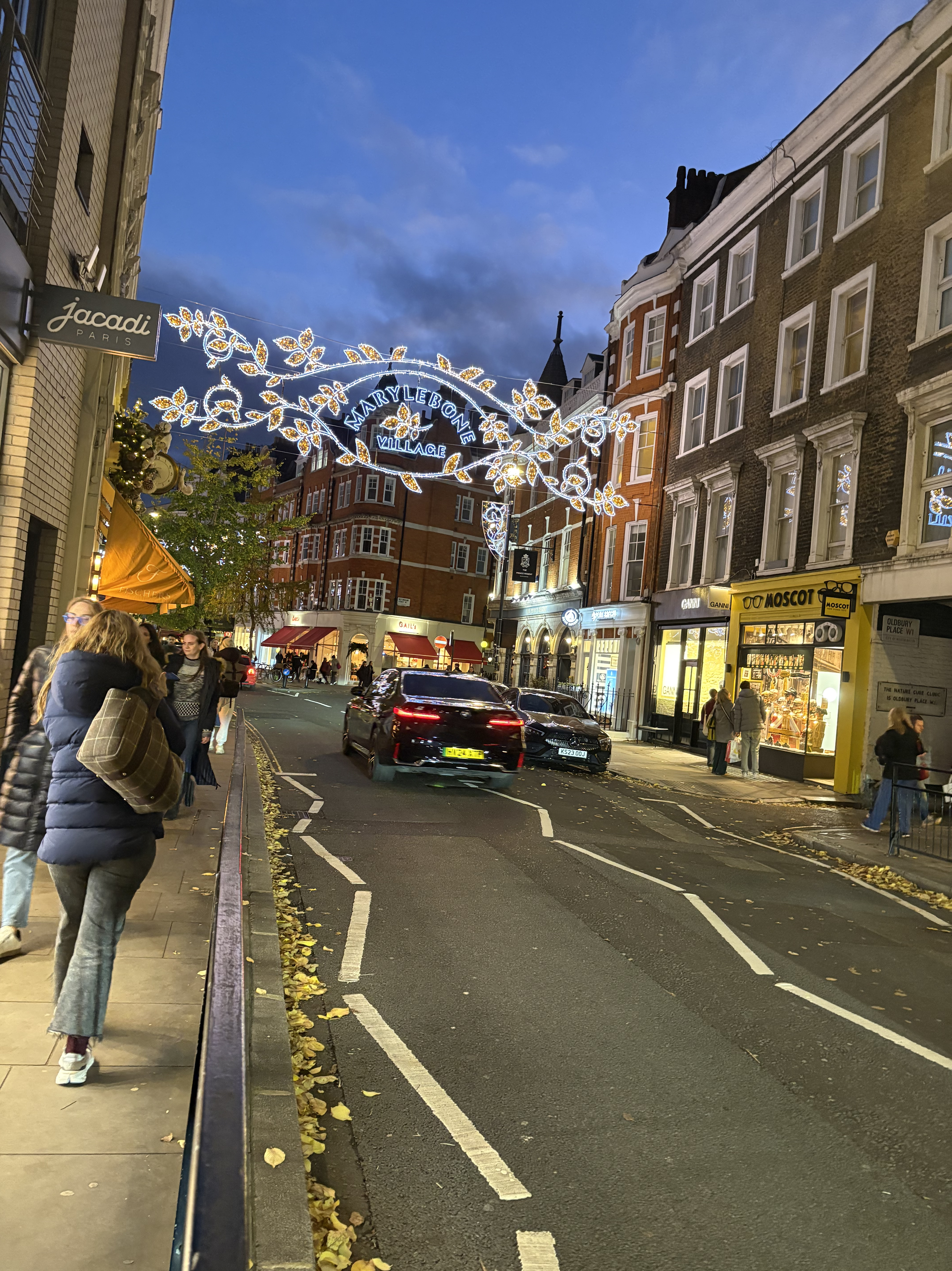 Men vi tar den långa vägen dit. Vädret är höstigt, klart och några grader ovanför tiostrecket. Män går i kortbyxor som brittiska skolpojkar. En del i kortärmat. Så vi knallar iväg mot Baker Street, går nedför Sherlock Holmes gata, jag kollar in huset där Beatles hade sin fatala Applebutik under en kort, intensiv period och fortsätter ned. Kikar in i en herrbutik som skyltar med nedsatt pris på det mesta. Expediten berättar att det anrika huset ska bort på grund av att det är i så dåligt skick att det inte går att rädda. Jag provar västar, kavajer, kollar in byxor… Expediten lovordar min klädsel och smörar på för att få mig på kroken. Z hejar delvis på. Han lovar att fixa byxlängder och korta ärmar under dagen. Jag tvekar, men säger att jag ska återkomma. Det gör jag inte. Vi fortsätter ned och smiter in i en butik för japanska köksknivar. Fortsätter ned till Selfridges och deras saluhall. Kikar på mat i mängder från havet, gården, från jakten, kakor, bakverk, bröd, kex, drycker… Vi går ut igen och ned på Oxford Street och dessa massiva myller av människor. In igen på Selfridges efter att ha tittat på deras julskyltning som går i Disneytema. De anrika snurrdörrarna skjutsar in oss och så småningom ut oss. Som mellanstation ska jag mot Paul Smiths resalebutik på den illa, grändliknande Avery Row i Mayfair. Affären med lite lägre priser än den på Floral Street.