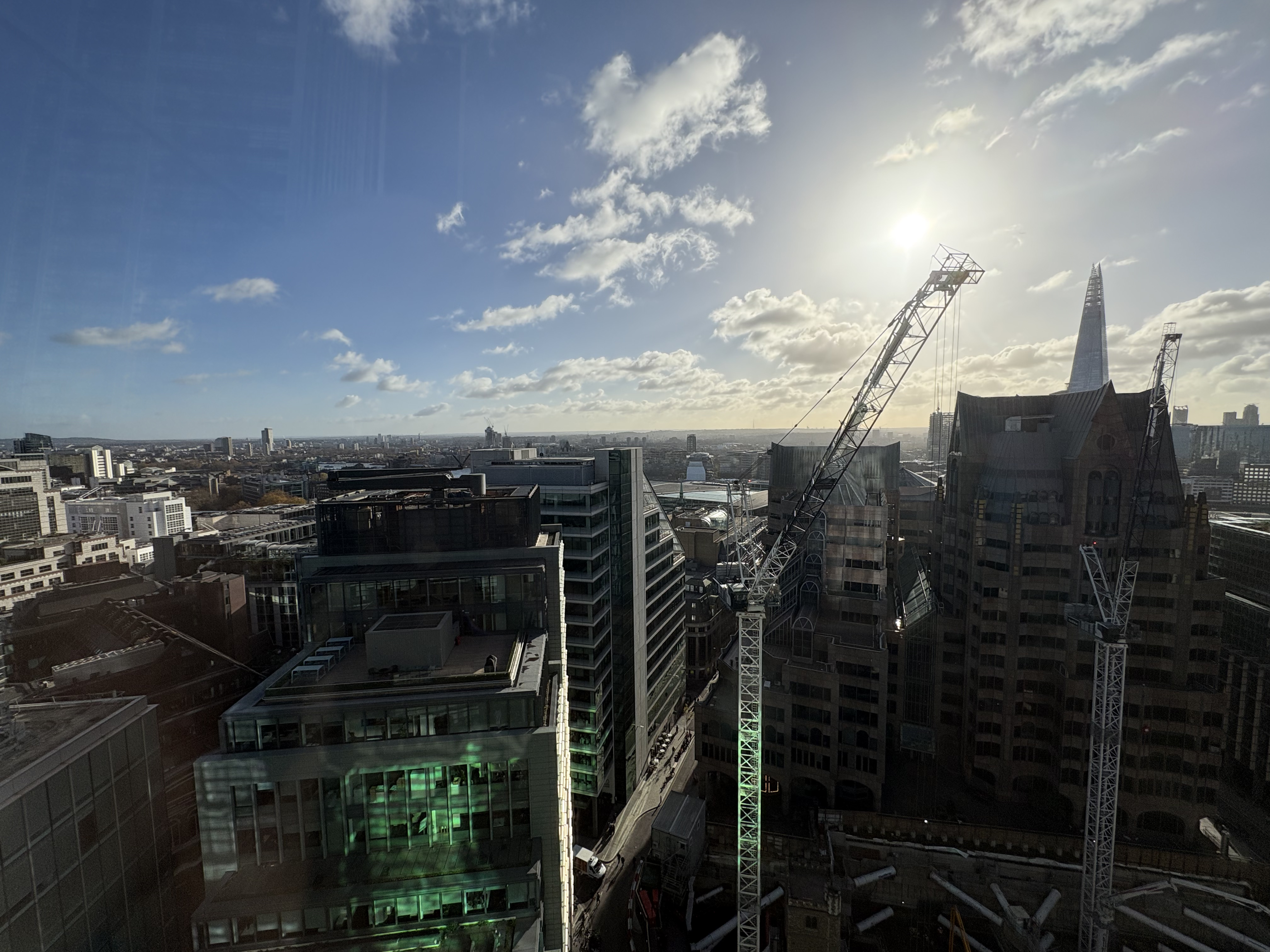Vi kliver av där vi ska och kommer upp på Fenfurch Street, traskar mot Aldgate och vidare mot Sky Garden, som ska vara vårt mål. En lunchstinn restaurang blir min räddning i nöden, en Next-butik blir föremål för en exkursion. Så korsar vi gatan och in i det som vi tror är vår skyskrapa med trädgård. Men det visare sig senare att vi hamnat på the Garden at 120 med nog så god utsikt en sådan här strålande dag. Vi tittar oss mätta efter att ha runt 360 grader, tar den snabba hissen ner och går mot Leadenhall Market, den anrika arkaden med anor från 1400-talet som vi länge önskat komma till. Tack för den slumpen. Det blir en snabb kopp kaffe i den vackra omgivningen innan vi promenerar mot gurkan… ja, den så speciella skyskrapan the Gherkin. Vi passerar den ena moderna byggnaden efter den andra, men utsikter och hissar har vi fått nog av, som ligger bland de inklämda gamla byggnaderna från ett långt bort då.