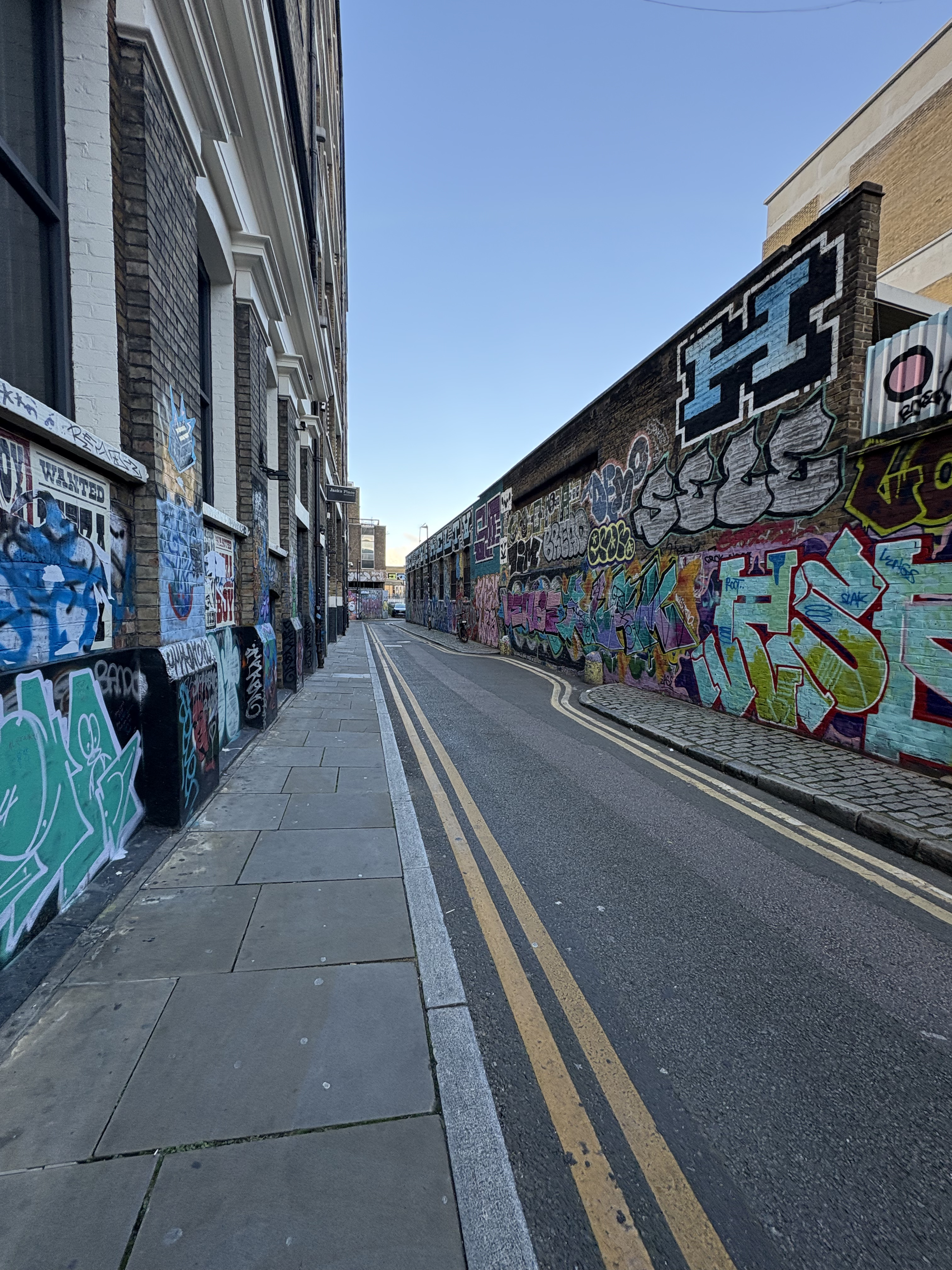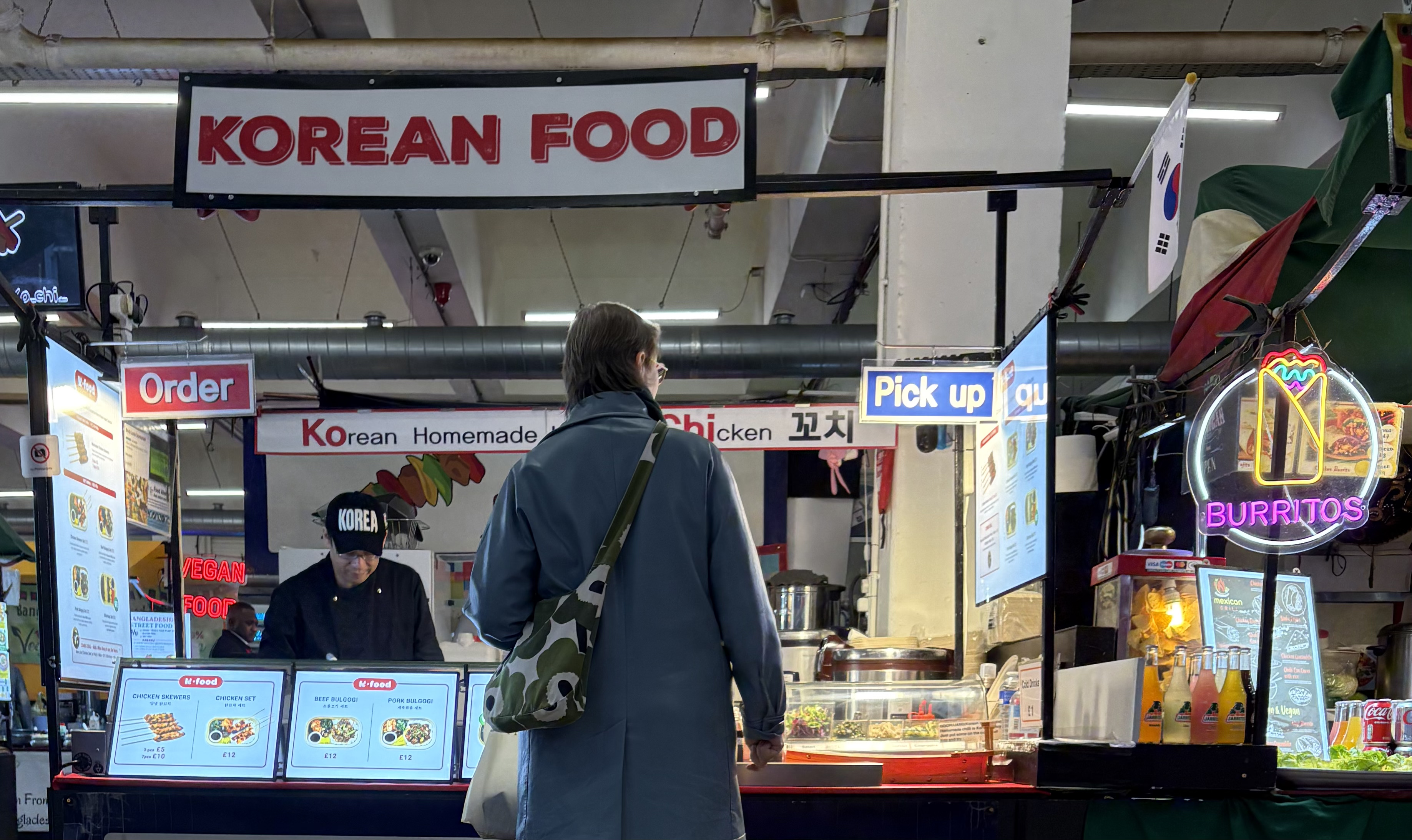 Nu ska vi till Spitafields Market med intilliggande Brick Lane med sitt myller av butiker och restauranger. Z blir omedelbart förtjust, tycker till och med att det känns bättre än Camden. Vi sveper förbi, stannar till föredömligt kort här och där och låter en koreansk snabbmatsrestaurang mätta våra magar på ett föredömligt vis. Vi kommer återvända hit, men tiden är för knapp. Så goodbye Yellow Brick Lane.