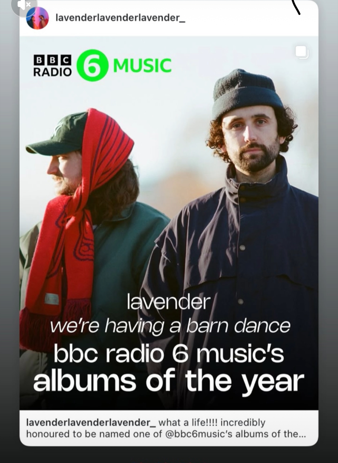 Jag vaknar tisdag morgon och scrollar in på Instagram. Ser att Lavenders album av BBC Radio 6 Music blivit utnämnda till ett av årets bästa. Stolt spelar jag hela albumet till frukosten. Och igen.