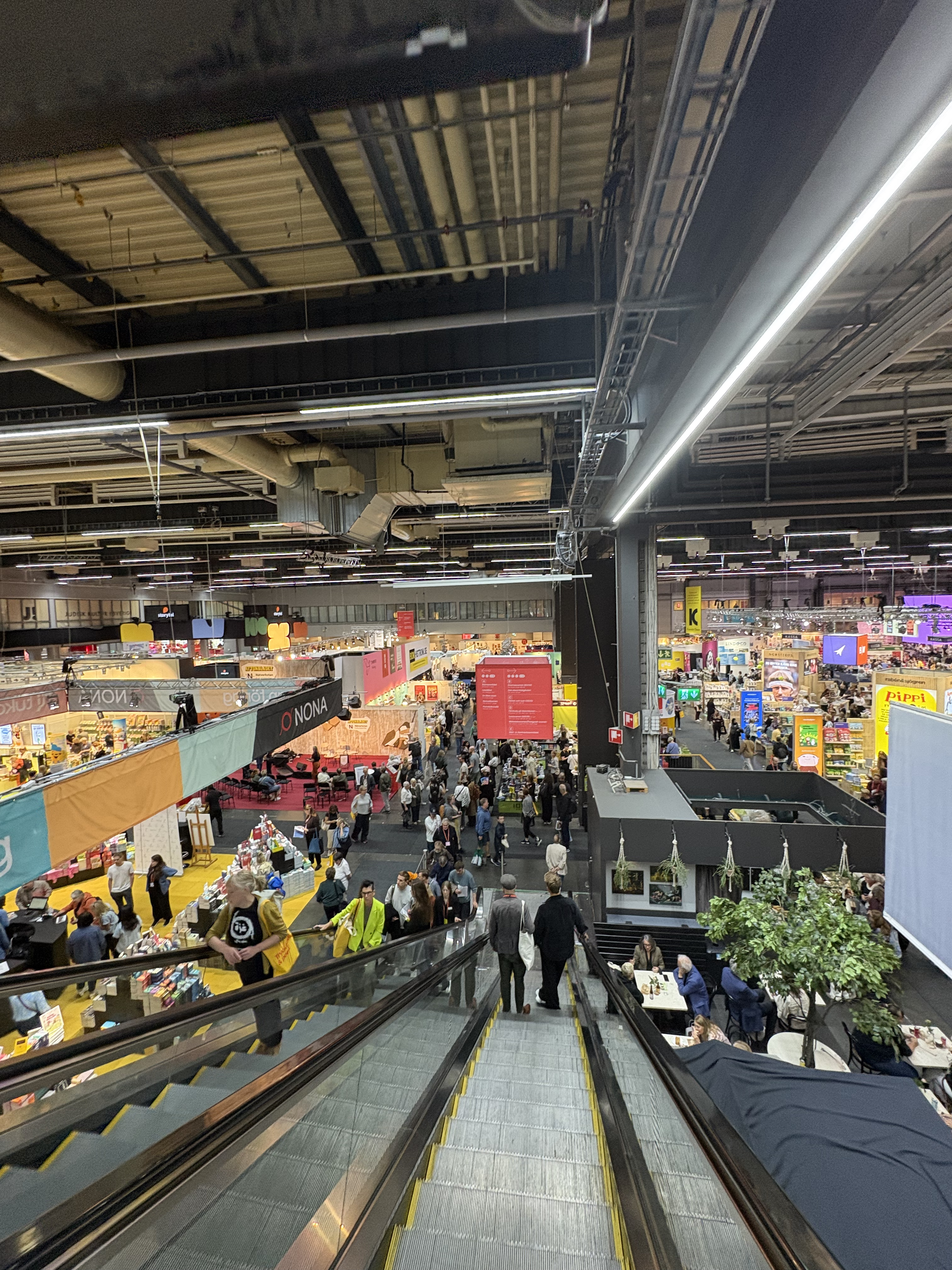 Vi tar oss mot Værnedamsvej. Ser förtjust på denna favoritgatan i Kphm, som det var länge sedan vi besökte. Går in i en ostbutik som dignar av lockande varor. Nästa gång, säger vi till den trevliga expediten. Nästa gång. Vi passerar Les Trots Cochons där vi njutit fler gånger än en. Men senast var också det länge sedan. En butik med julprylar lockar in Z och jag följer med för att snabbt gå ut. Jag är rastlös. Z kommer, men vänder in igen. Hon har sett någon julpryl i skylten och vill köpa den. Hon kommer inte tillbaka. Jag står under en markis och spanar in folklivet, som är intensivt i kvällsmörkret. Z kommer inte. Jag vänder åter och står utanför och tittar in. Det är kö. Z är i och för sig först i den, men expediten håller på och krånglar med en krånglande kvittorulle till betalmaskinen. Jag suckar, återgår till min position under markisen. Så kommer Z och vi kan ta oss ned mot Vestebrogade och Hovebanegaarden, tar fel perrong, undrar vilket tåg som tar oss till Ørestad och hur många zoner vi ska betala. Löser det. Hamnar på rätt tåg, betalar rätt avgift, tar oss tillbaka till hotellet och börjar röra oss mot arenan genom Fields. Vi behöver köpa tandkräm, som vi missat att ta med oss. Inne i den gigantiska butiken Bilka (en kedja jag helt har missat under mina år med Z – 2007 till nu) tar vi en vända och inser, bland alla matvaror, att vi är helt i fel fas gällande kost. Vi kommer inte hinna äta innan konserten, om vi inte köper något här. Det blir håndmadder, små smørrebrød, som vi tar med oss i hopp om att Z ska kunna smuggla in dem i arenan. Jag har mina dubier; inte hon. Hon har, som vanligt, rätt. Vakten känner förvisso på henne väska, men den väger lätt, inga drycker i flaskor där. Maten är räddad och øl köper vi i baren.
