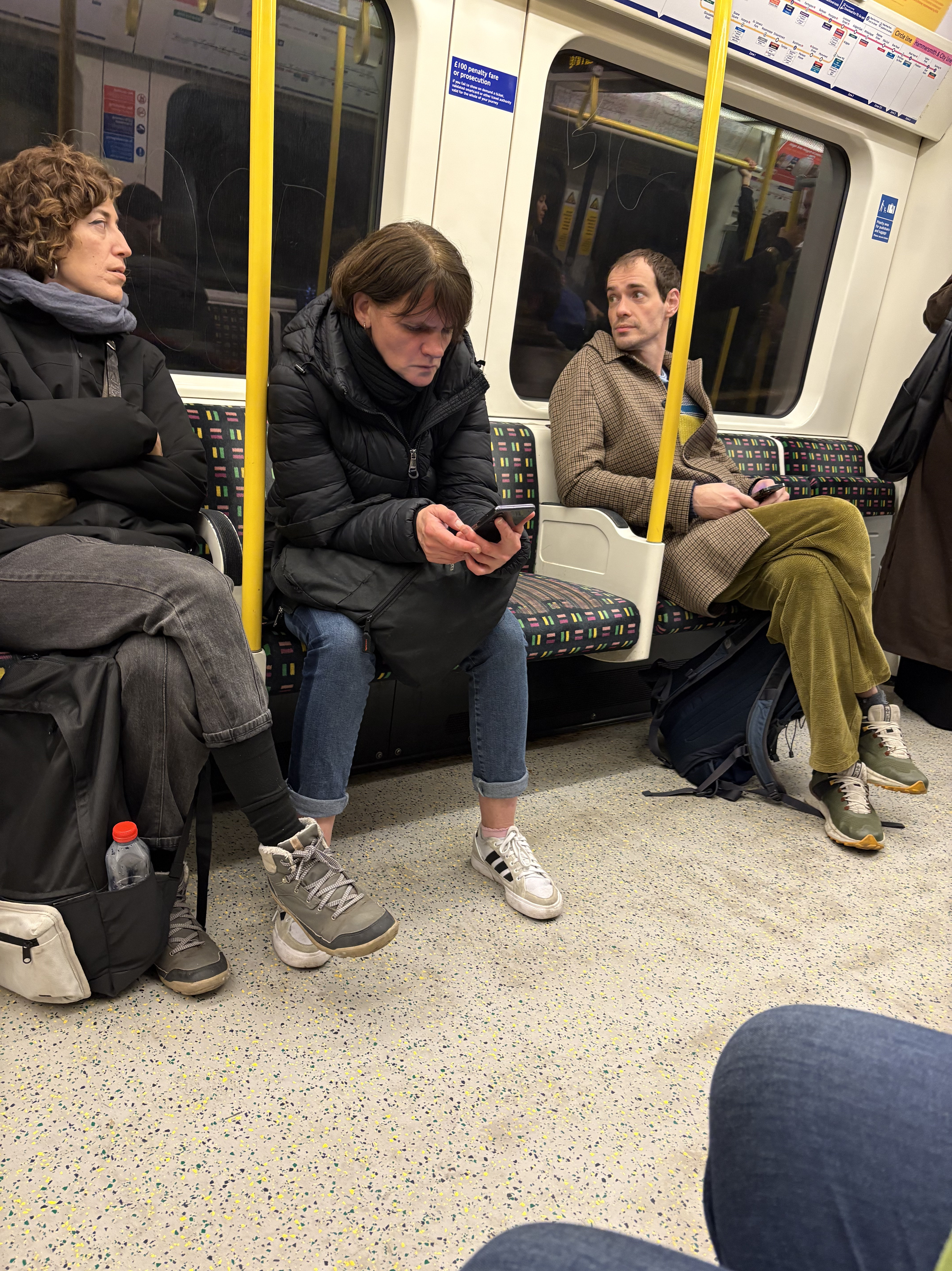 London Underground, både på perrongerna och i tågvagnarna, bjuder alltid på spänning. Det gäller att vara vaken och kolla in sin omgivning. Kan det vara en celebritet som utmanar kollektivtrafiken för sin resa från A till B…? Han som sitter där snett över, är inte han någon. Han som klär sig så nonchalant, men elegant.