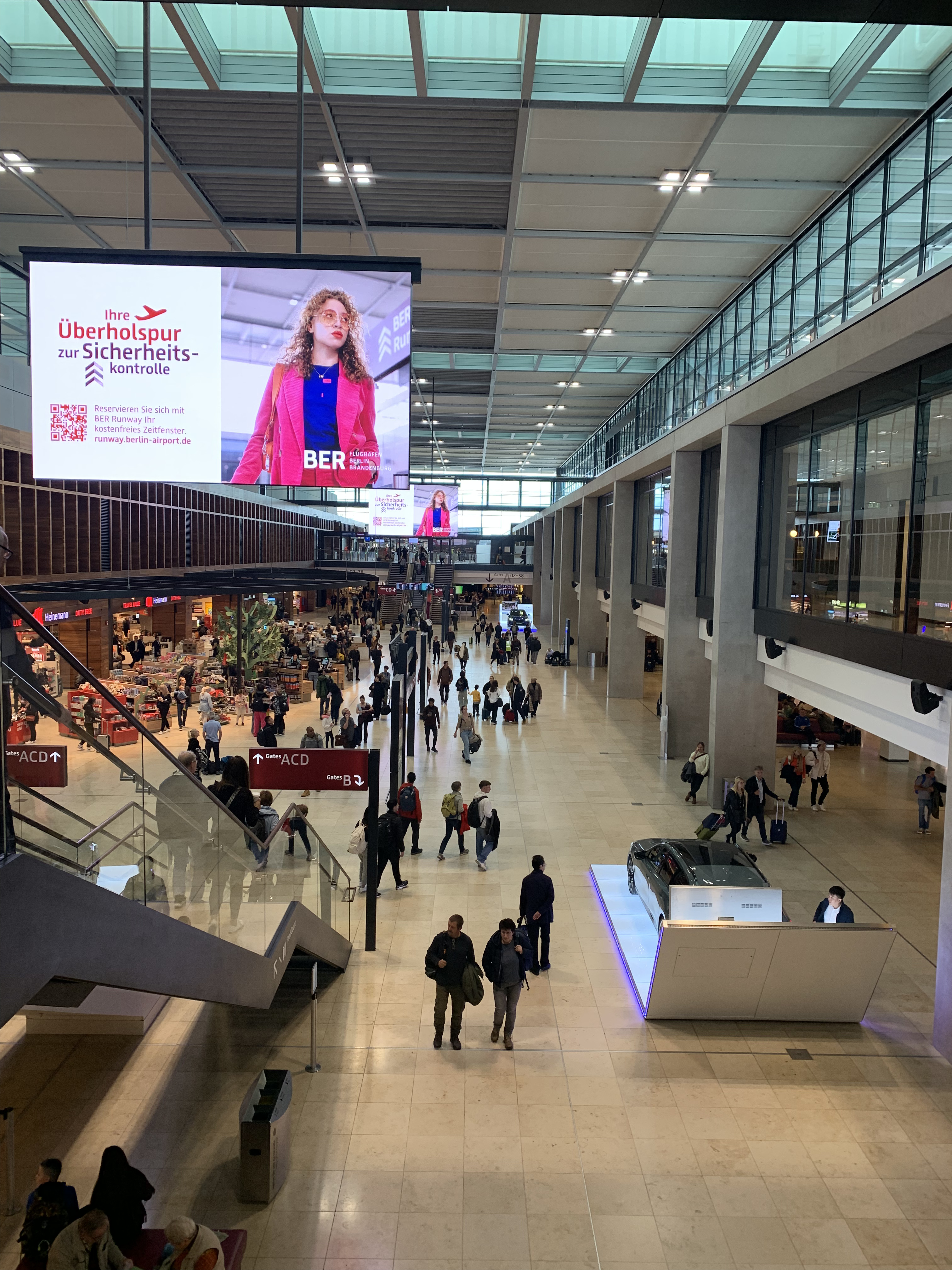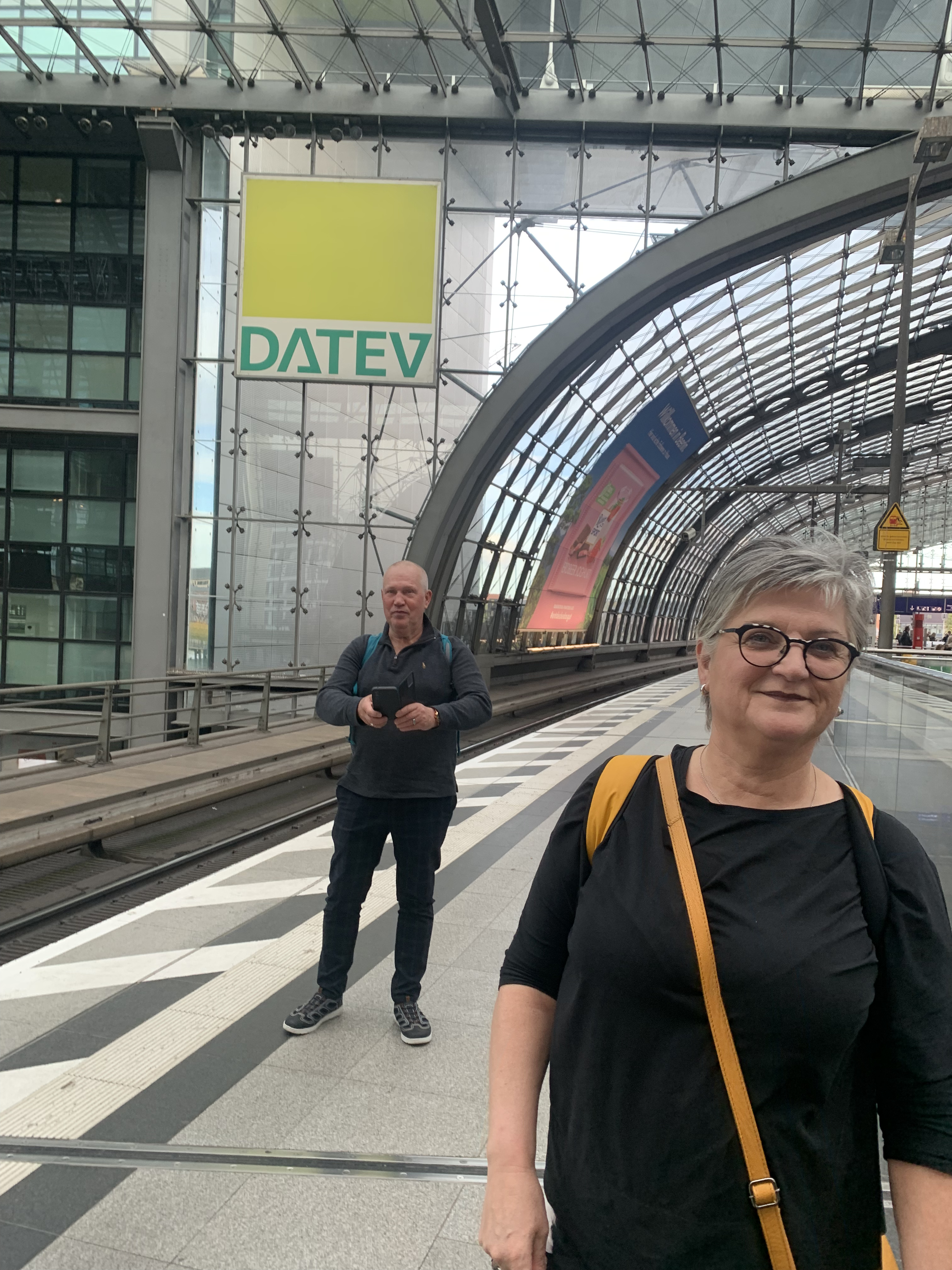 Kön in till avlämningsplatsen är lång. Det visar sig att ett av två körfält är igenstockat av en bil som fått motorstopp. Lyckligtvis ger slumpen att jag tagit den andra. Bilen framför lämnar sina käraste, lyfter ut bagage och står och kramar en stund. P och S kliver också ut, tar S:s bagage och jag lämnar även jag bilen för att ge S en hastig kram innan de får ägna sig åt varandra.
