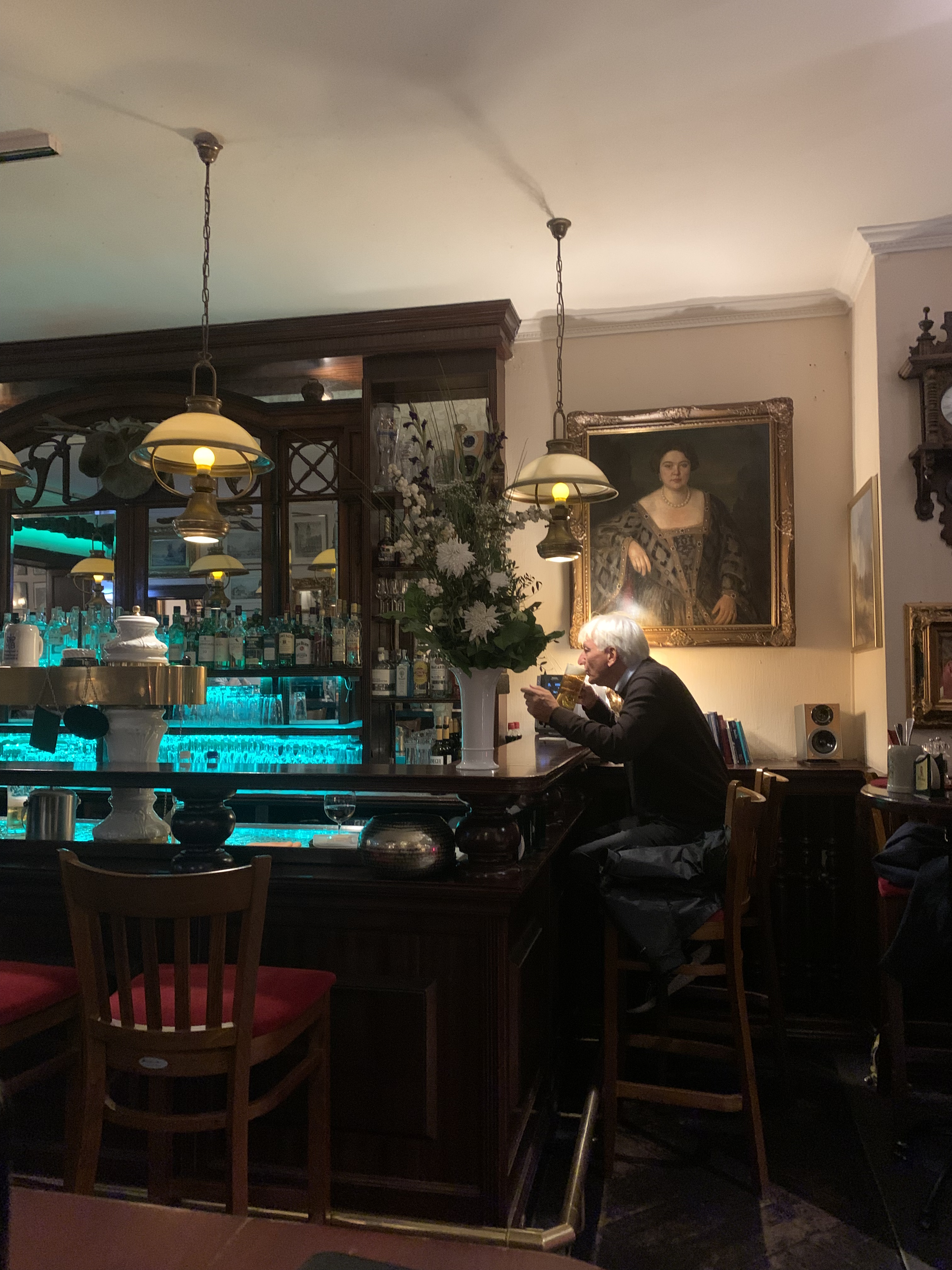 Efteråt tar vi en öl i puben bredvid. P dy säger att vi borde försöka gå in och tacka. Jag tvekar. Inte kan vi väl det… Störa…? men vi går backstage där vi hämtat biljetterna. Mannen där känner igen oss och lovar att mr Buchanan kommer uppskatta att vi säger hej.