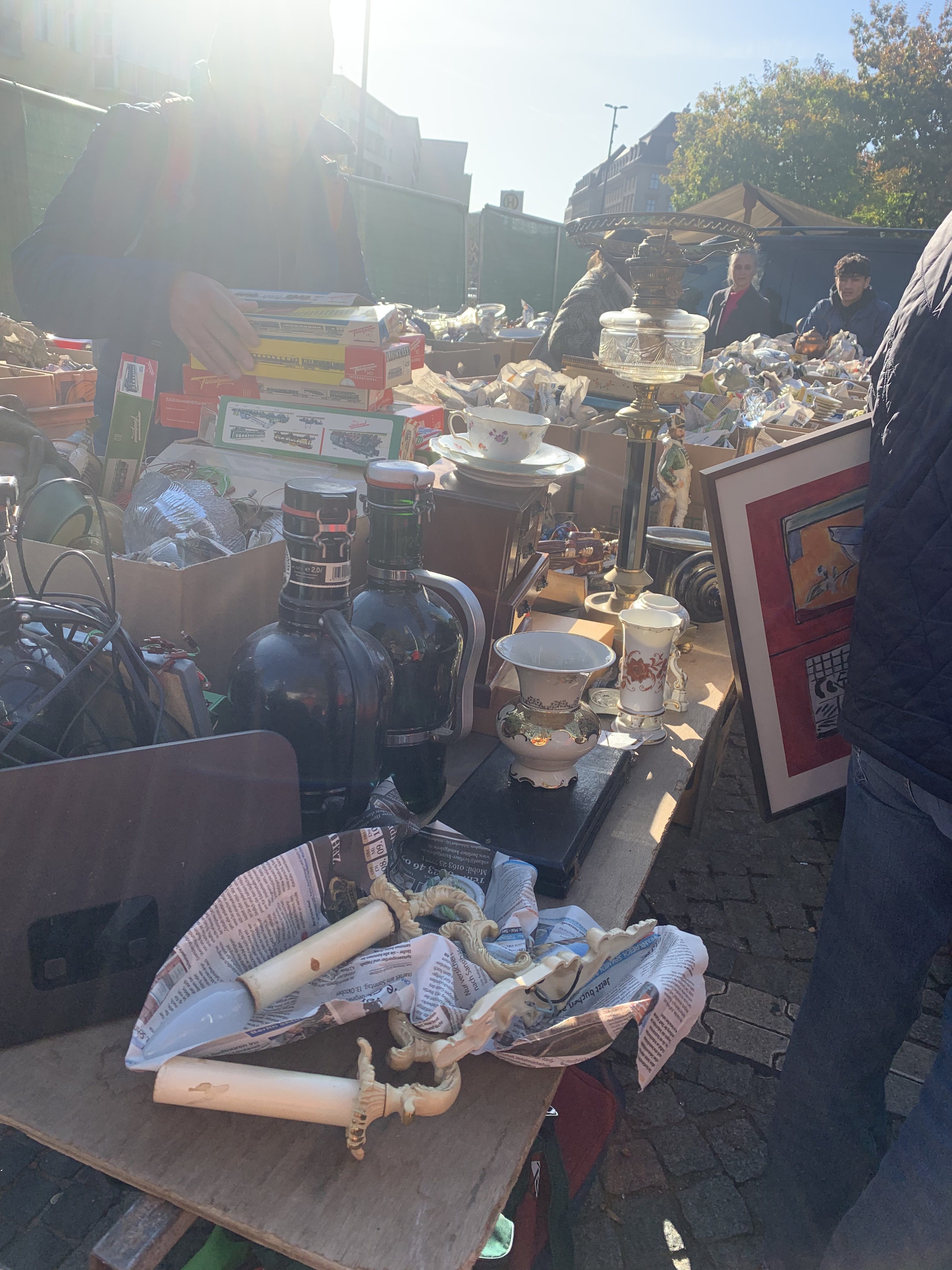 Vi är där någon dryg timma innan vi åker tillbaka till Virum och hämtar T för loppisen i Charlottenlund. Det var där, förra året, som jag hittade toppengrejer för en spottstyver. Jag antog att det var stöldgods, men vem är jag att anklaga eller bevisa.