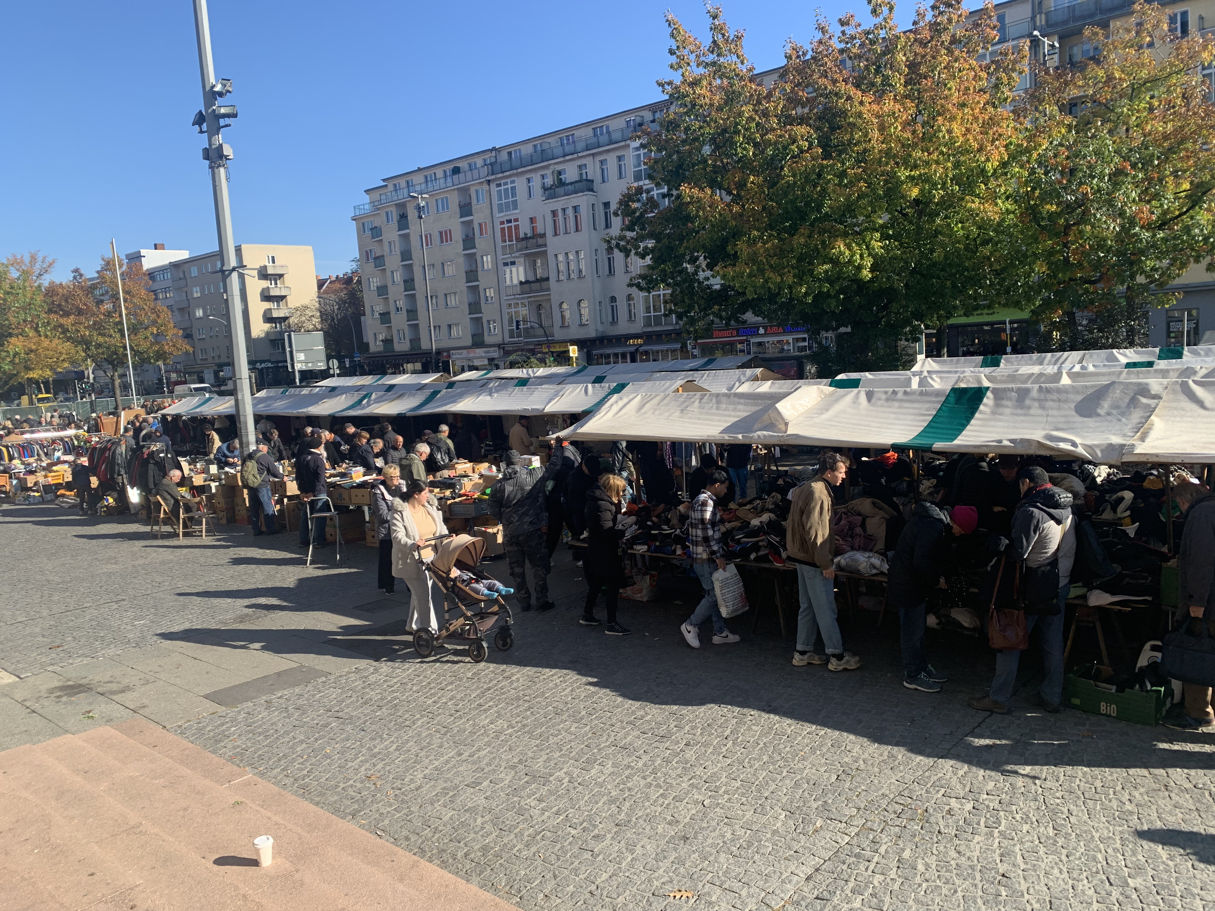 Det är horder med säljare, än fler köpare. Kläder, kläder, kläder. Mest för kvinnor. Somt för män. Solen steker och värmen stiger. Det finns ingenting som lockar. Å andra sidan har jag hittat plagg sedan tidigare på resan, så behöver är väl tillgodosett.