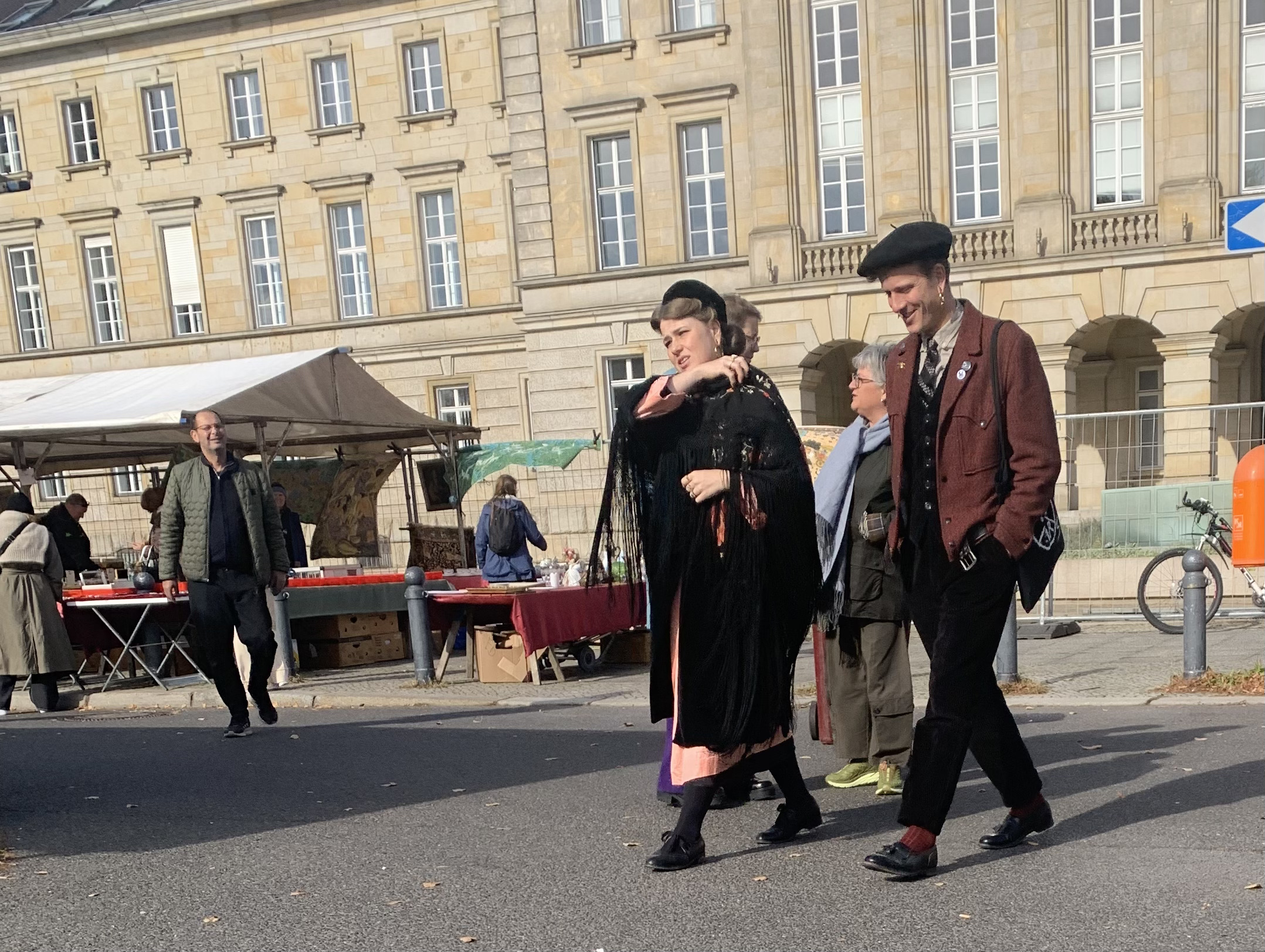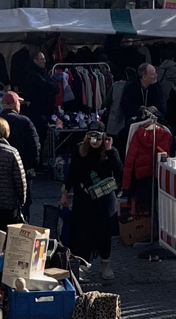 Förra veckans lynniga väder är som bortblåst. Himlen står hög och klar, solen skiner sitt leende och vi går vår tur, som alltid en gång ned, samma upp. Inget ska missas. Utbudet är inte samma som förra veckan, då jag hittade fina grejer och G köpte byxor och, lite oväntat, en polo, en nästa ny Sand i brunt. Men det blir ett Paul Smith-skärp för 30 DKK och ett Alexander McQueen-linne för samma summa.