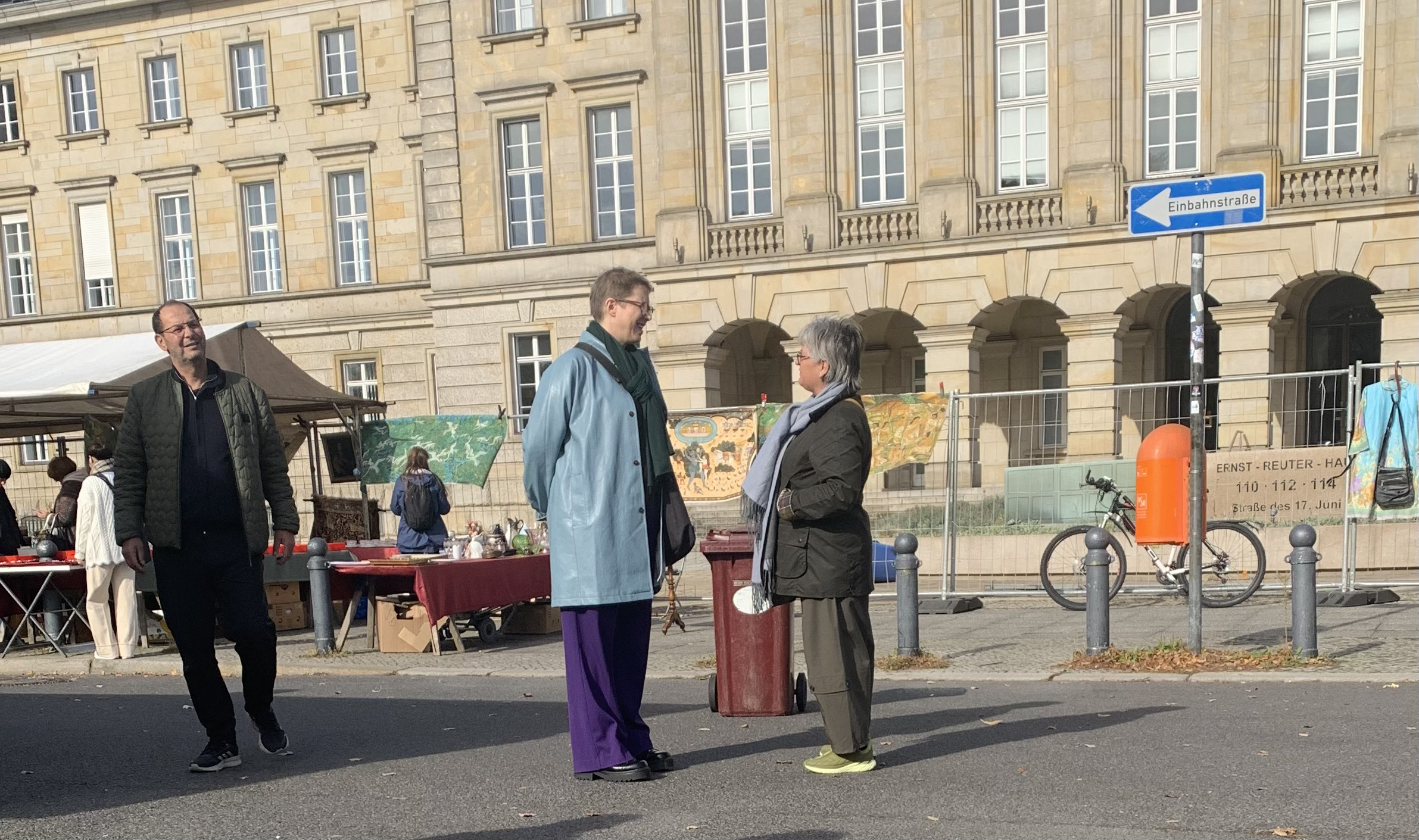 Bilen parkeras, arrangören kontaktas, ett bord ställs iordning efter lite missförstånd och platsen där trion ska vara hittas. Vädret håller andan under en mulen himmel. Marknadens stånd ställs i ordning på Dockstavägen. Några har varit på plats länge, men än så länge är det inget folk.