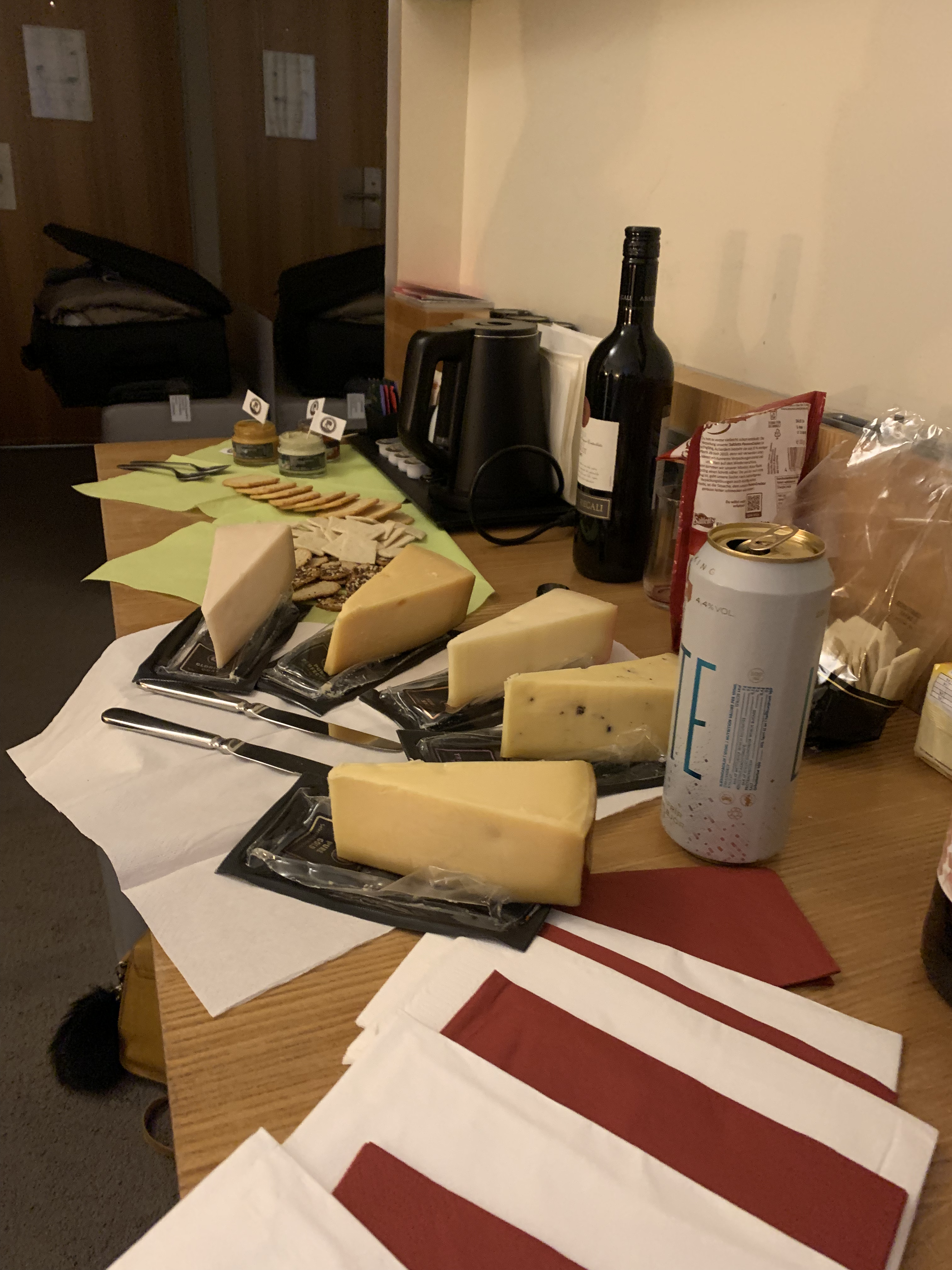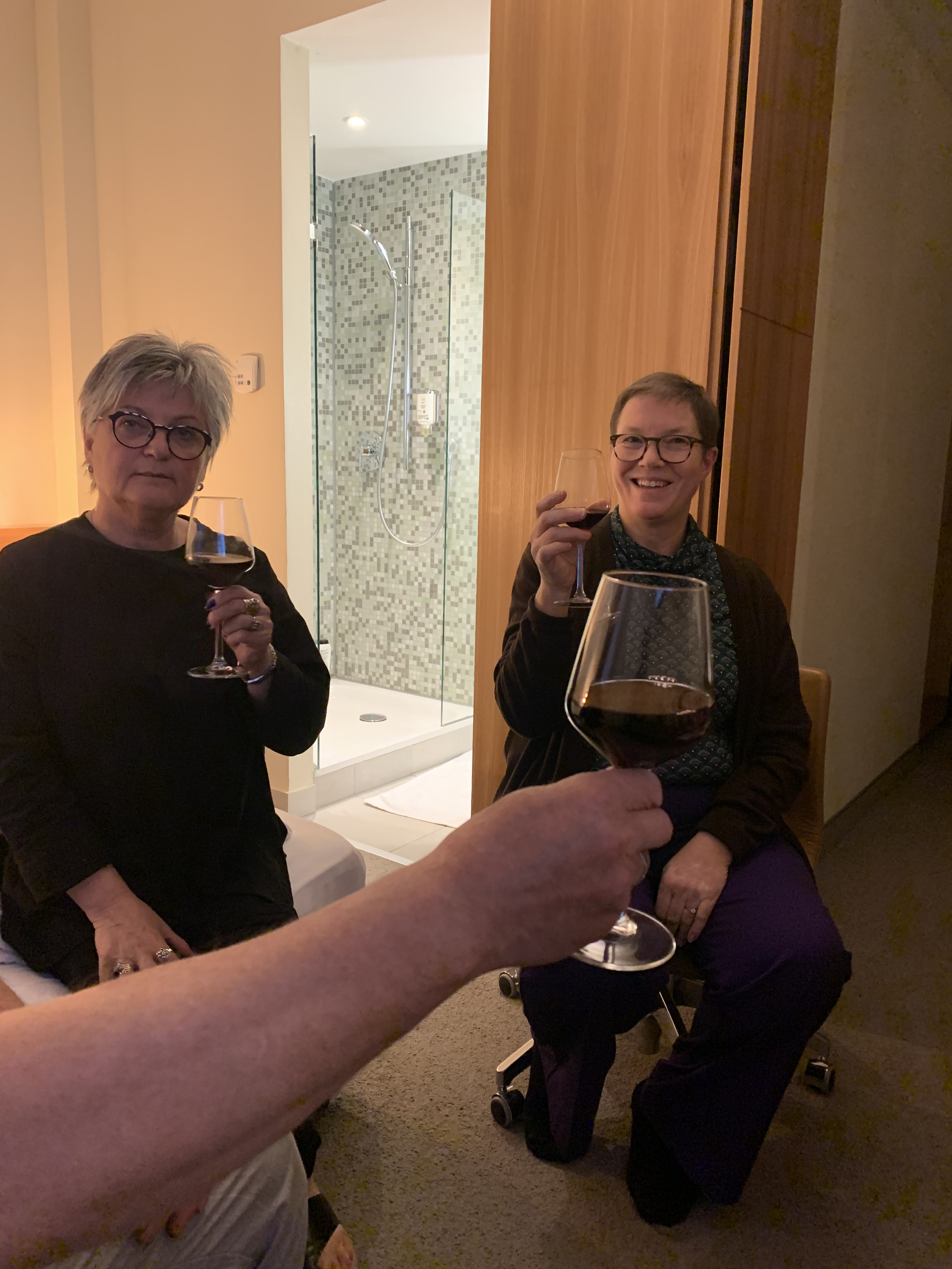 Vi sitter och pratar, tar ett glas vin, men kroknar alla tidigt och checkar ut för dagen för nya äventyr.