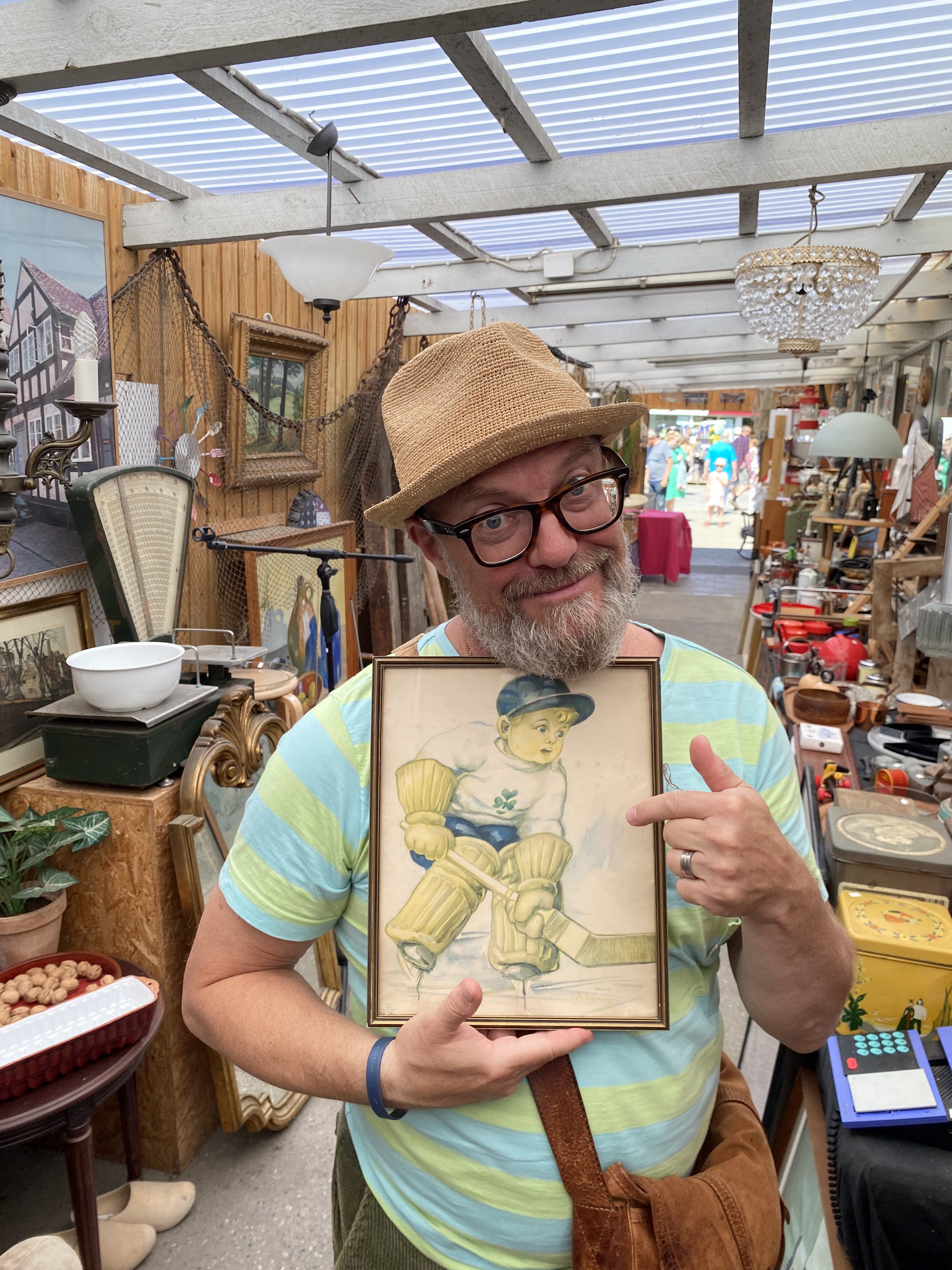 Det blir ingen business och vi går vidare, passerar en Fjällräven-butik och lite andra kuriosa affärer för att gå över gatan till secondhandbutiken Sport’s Junkies & Clearance Center, men väl där förfäras jag mest över hur dyra begagnade skydd är. Visserligen lockar ett par urgulliga målvaktshandskar – plock och stöt – av CCM, som barnbarnet skulle få. Men, nej, jag avstår.