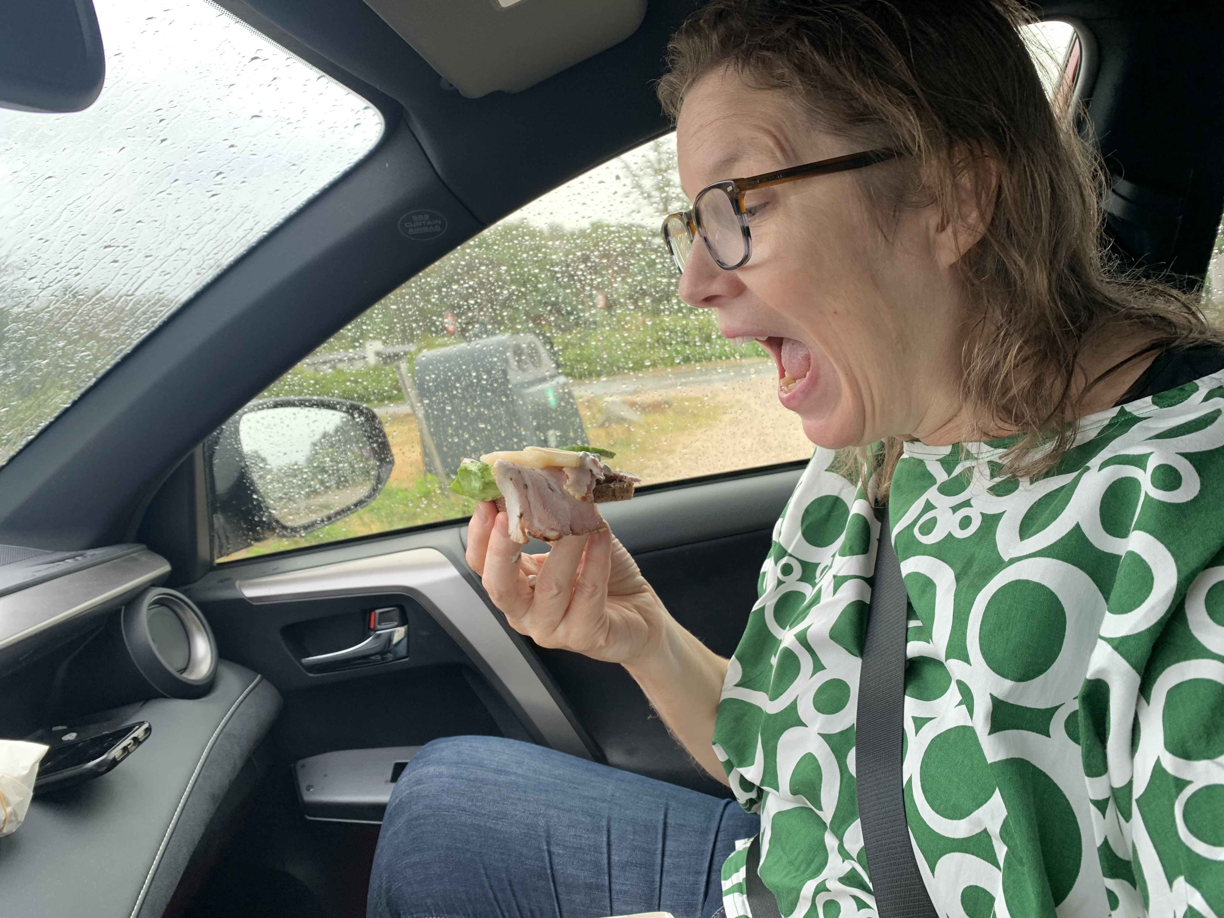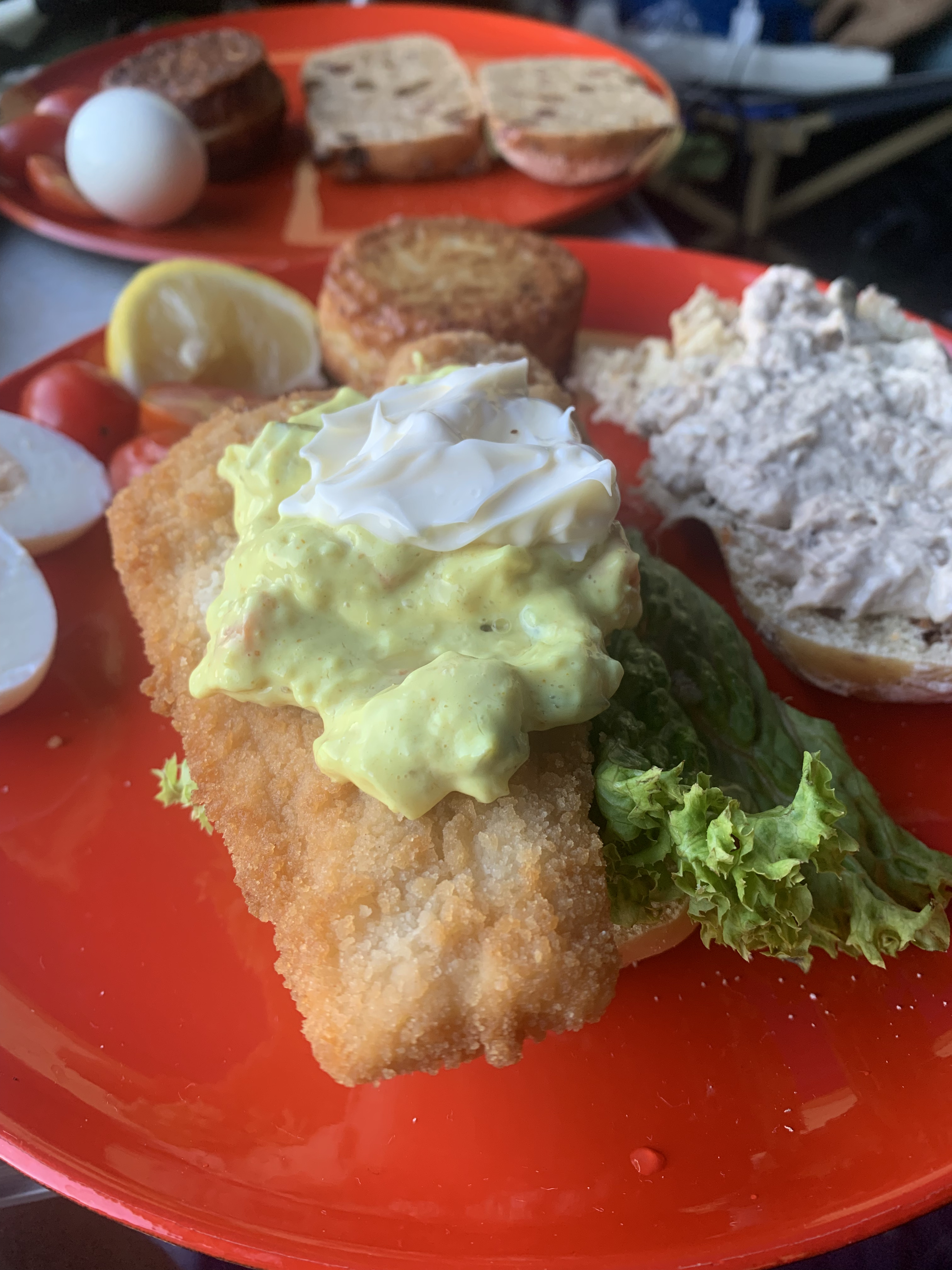 Vi tar iväg efter GPS och eventuella ställen som eventuellt kan tänkas ha det vi eventuellt söker. Det blir några modiga timmar där vi börjar med Gentofte med Elgiganten (har inget), Jysk (köpte ett lakanset, en kudde och ett täcke – det sistnämnda till Z – på rea för jag har missat i packningen) och Ikea (har inget av det vi söker). Vi forskar vidare och kör mot Herlev via krångliga omvägar grund av arbetet med spårvagnslinjen Ishøj–Lyngby som grävt upp sträckan, ut på motorvägen, ned mot Hem & Fix, som har kylboxen men inte adapter till densamma, ut mot Big Shopping Center (låter lika vulgärt som det är), in på stora Føtex. Där finns både kylbox och adapter (den unge mannen i kassan missar att ta betalt för adaptern). Utanför kassan finns ett bageri (som brukligt i Danmark). vi ska ju ha bröd, men de stora påsarna som står uppe på glasdisken lockar vår nyfikenhet. Z frågar. Det är bröd. Bröd av olika modegenrer. Påsarna ingår i en app där man kan köpa uttjänt, men ätbart. Z har appen och plötsligt står vi med en stor kasse bröd för en ytterst ringa peng. Ute på parkering ser vi en sorgligt sliten figur, som går från en bil till en annan. Tiggandes. Han kommer till oss och pratar ett språk vi inte riktigt får ihop. Han försöker på tyska. Z kan en smula. Men de pengar han önskar blir till tre stycken frallor, som han tacksamt tar emot. Det var det lilla. Hur hamnade han här. På en p-plats vid ett köpcenter långt utanför Köpenhamns centrum? Vi far vidare. Mot Bauhaus, där vi hittar adaptern till elstolpen. Nu kan vi få ordning på kylvarorna och kan ladda mobilerna.