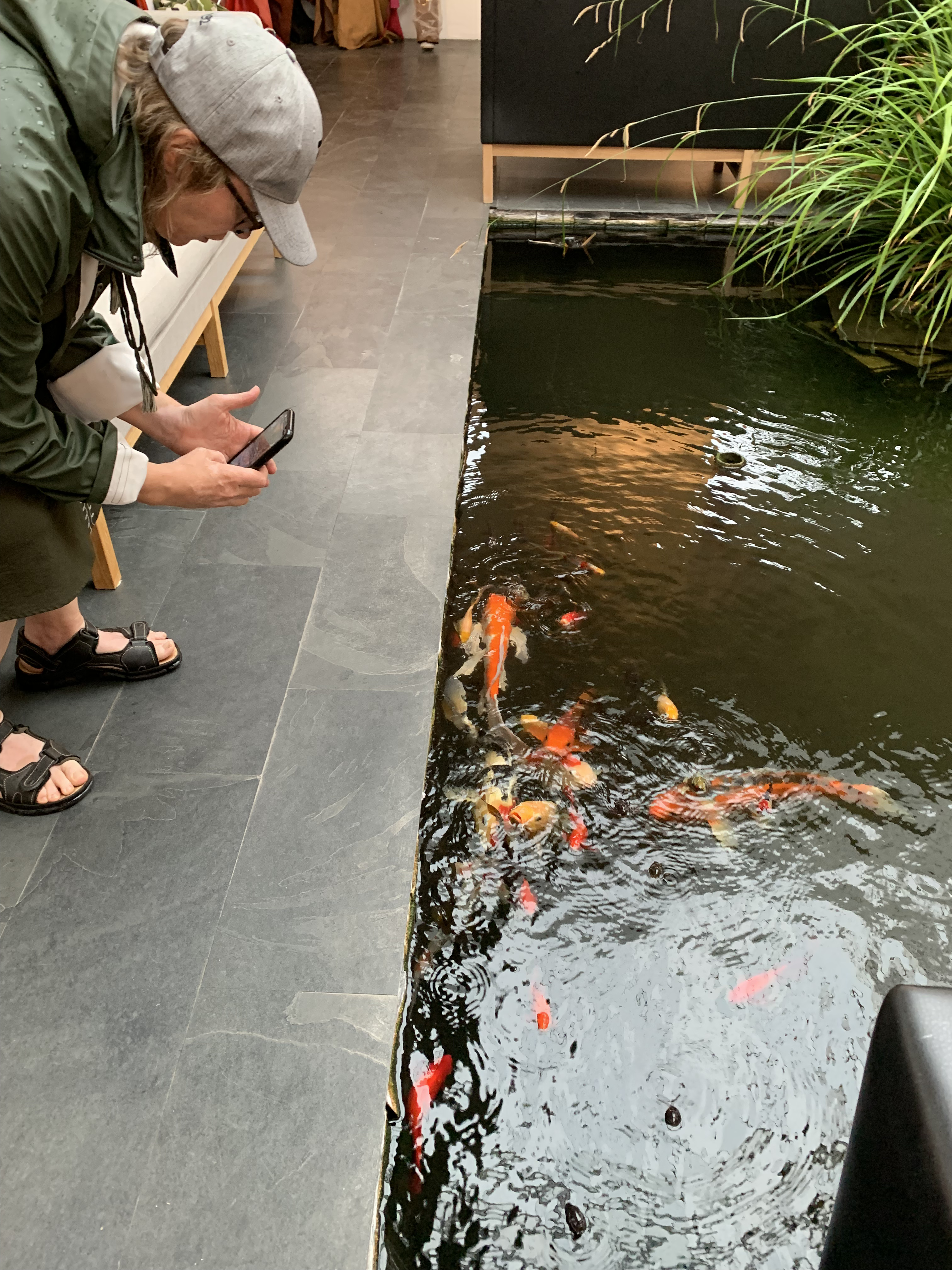 Vi betalar vår entré, packar in ryggsäckar i ett skåp som kräver en euro, som vi saknar. Z tar initiativet , går upp till kassan medan jag vaktar skåpet, det olåsta. Hon kommer tillbaka med ett plastmynt, vi kan låsa och gör entré i Mirós underbara värld.