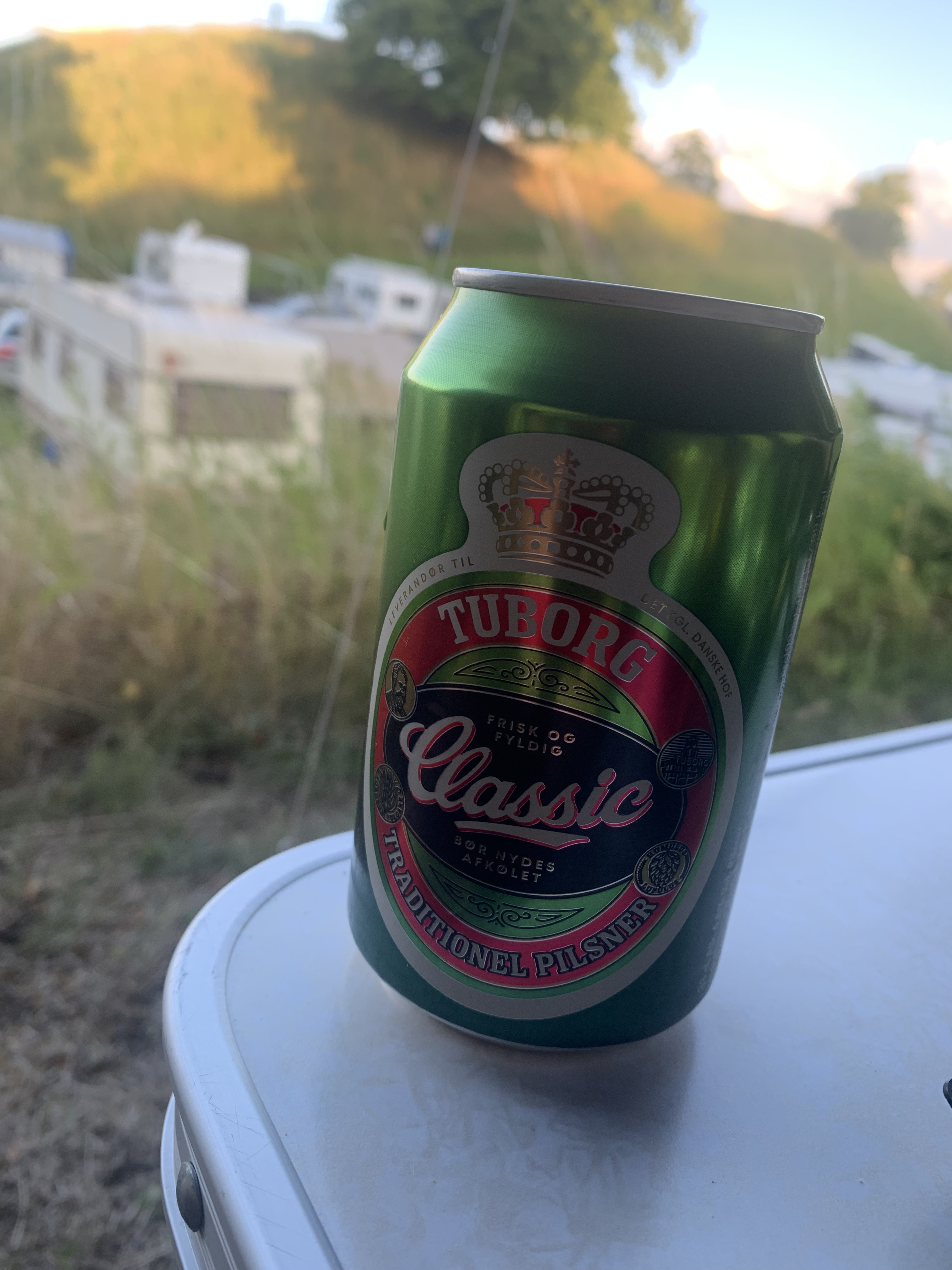 Kopplingen till elstolpen kräver en adapter, som vi inte har. Men den danska grannen med fru, de ska se Springsteen på Parken senare i veckan, har en extra och lånar ut den, eller… visar det sig, han ger den till oss. Camping förbrödrar.