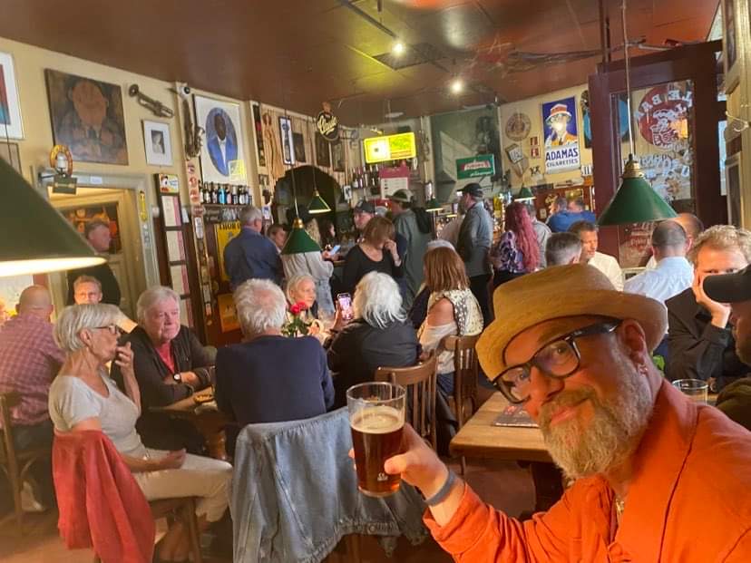 Jag har på förhand fått reda på denna överraskning och vi extranumret ger jag inte bara Pernilla en Ripasso utan också en finöl till Fredrik och två burkar Göteborgsöl till Mikael och Jerker. Som tack för musiken. Som tack för platsen på gästlistan, där jag också kunde få med vännen Niklas Hjulström; han och jag firar 40 år som vänner i år. Svindlande.