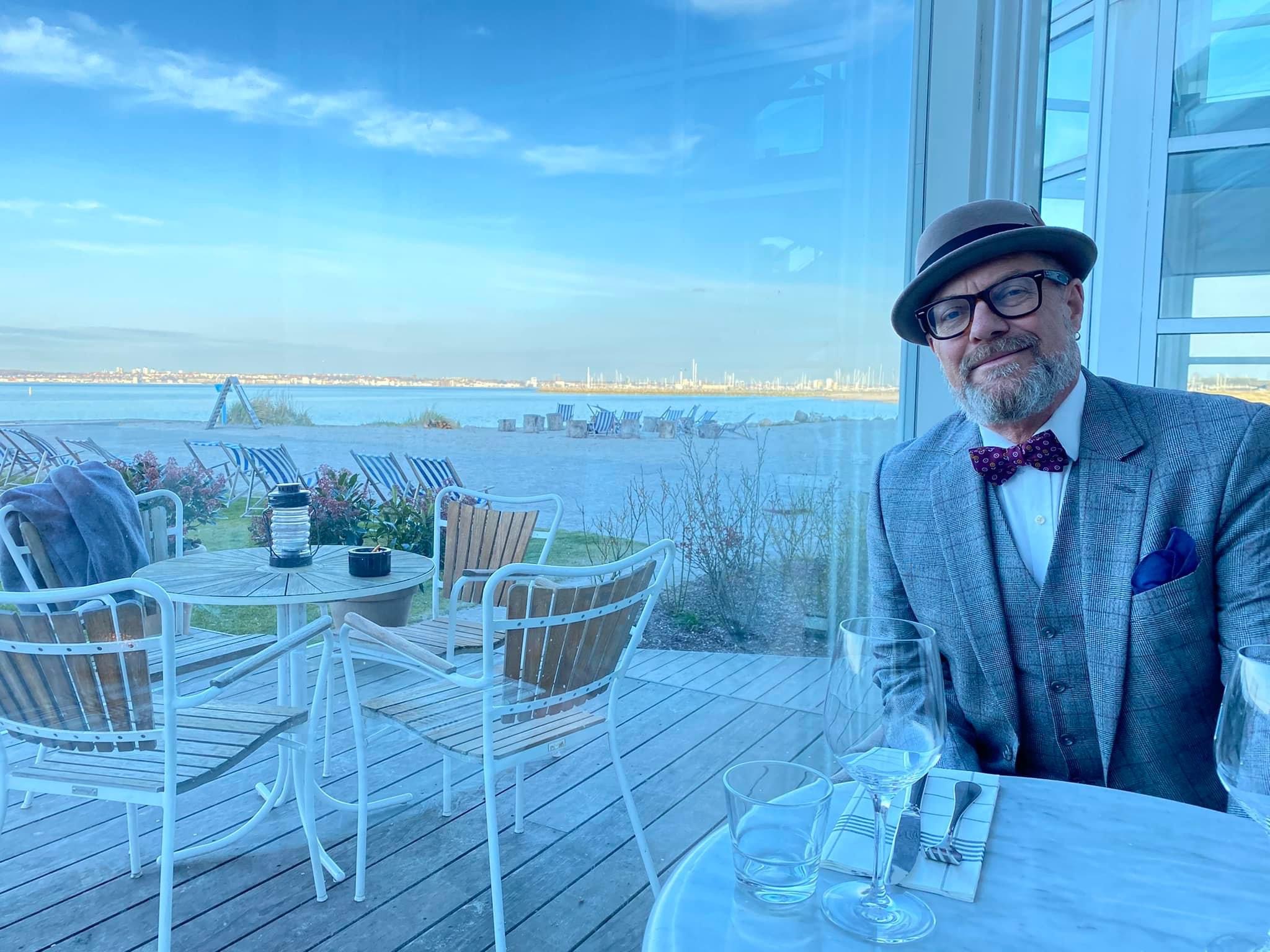 Så närmar sig klockan sju och vårt bord i baren med utsikt över norra Öresund och Kullen i fjärran. Vi välkomnas av en ung fyr, sätter oss tillrätta och väntar på att han ska komma tillbaka för att ta vår beställning. Bli väntar. Och väntar. Samt väntar igen. Så reser sig Z och påkallar den unge fyrens uppmärksamhet, frågar om han har glömt av oss och han erkänner direkt, lovar oss var sitt glas som kompensation. Z skrattar och förklarar hur dagen på hotellet har sett ut och det blir än mer pinsamt för vår servitör. Men väl med mat och dryck på plats är allt klockrent. Vi sträcker ut i tid, tar in kaffe och varsin cognac innan vi tackar för oss och går till rummet för tv och säng.