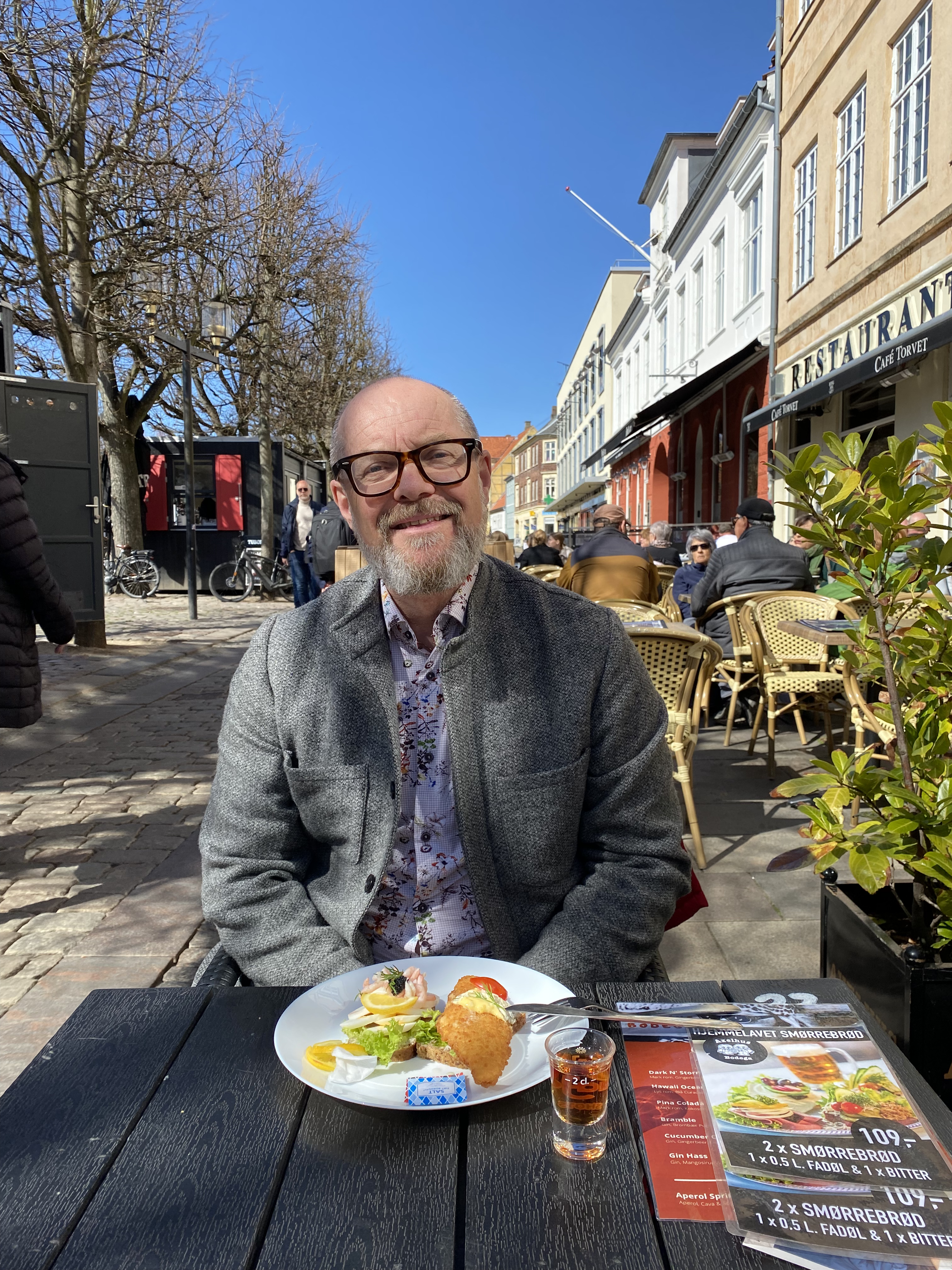 Tiden har ju gått och vi med den genom Helsingør. Vi har passerat Axeltorvet och sett restaurangerna, sett folk suga på en öl och äta något gott till i solskenet. Det är 19 april, det är i påskens efterdyningar och vi har det bra. Så vi går in på en restaurang på hörnet som utlovar smørrebrød, beställer och med det öl och för mig också en gammeldansk. Vi sätter oss i solskenet, njuter av stillheten och eftermiddagsfriden, ser i ögonvrån en milt sagt berusad stamgäst som både personal och gäster har koll på, precis som hans vän. Vi äter, njuter och konstaterar att vi har tid för backgammon, som jag kan dåligt, Z väsentligt bättre. Men jag vinner första. Hon den andra. Men istället för ett avförande parti griper rastlösheten; jag vill vidare.