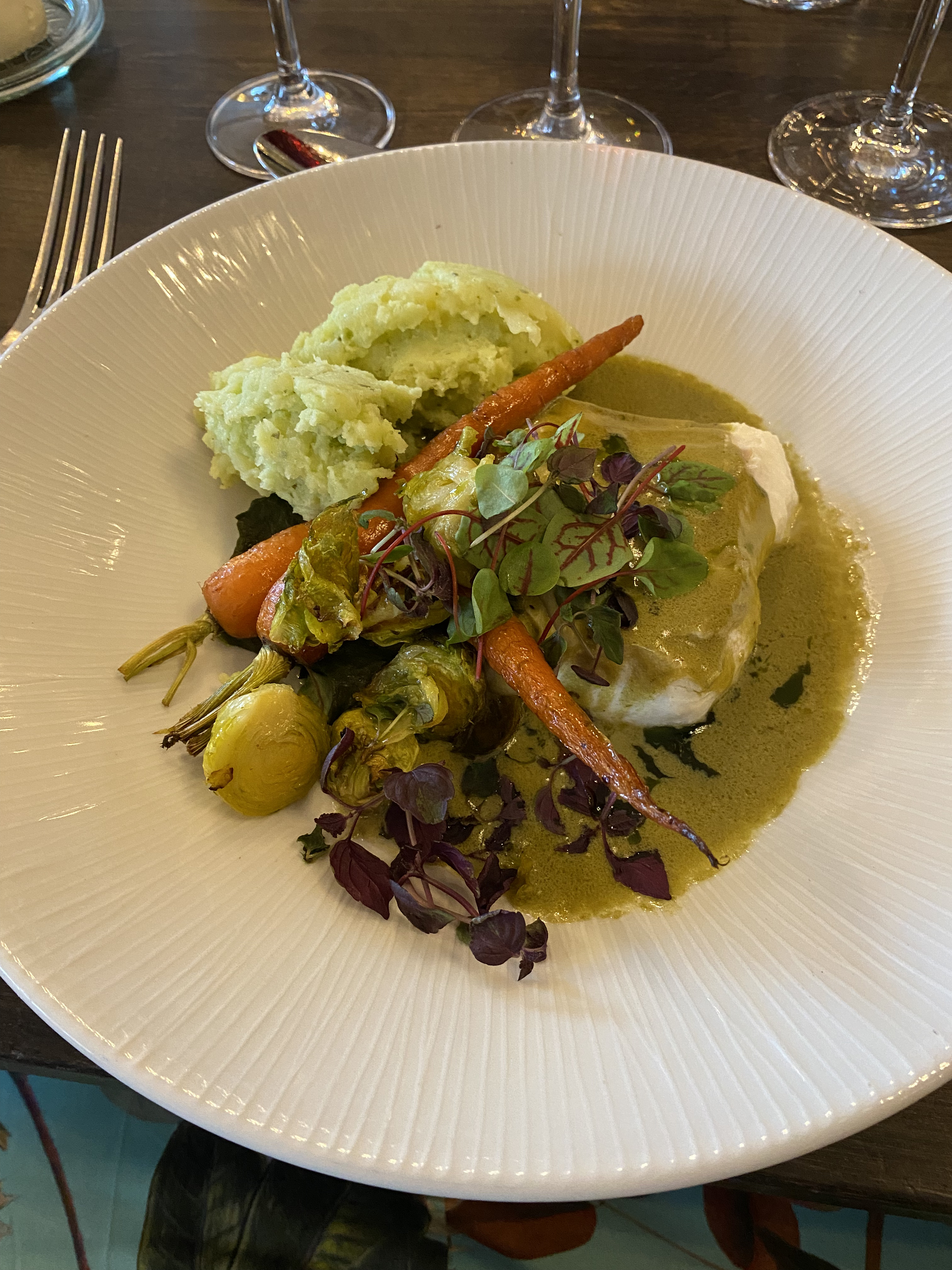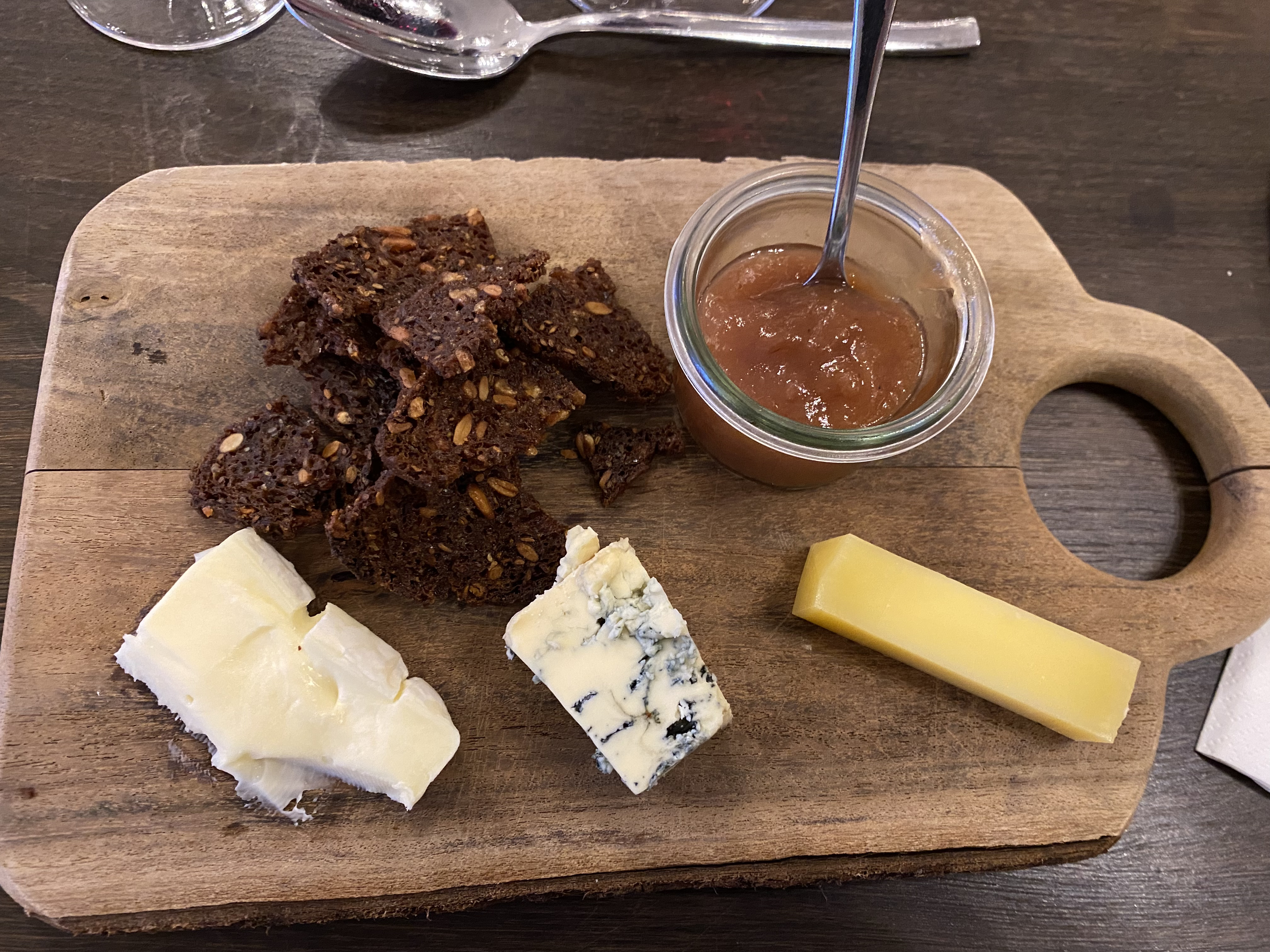 Vi slår oss ned vi vårt bord. Blir bums betjänade. Får välja ur menyn, tar råbiff som entré och torsk till huvudrätt. En vinmeny till, anpassat efter våra beställningar. Förutom efterrätten beställer jag, inspirerad av dagen, en ostbricka. Vi låter oss väl smaka av allt, tar in kaffe till desserten och smälter både maten och dagens intryck. En bra dag tillsammans med kvinnan jag älskar, som jag träffade för 15 år sedan. Som det kan gå.